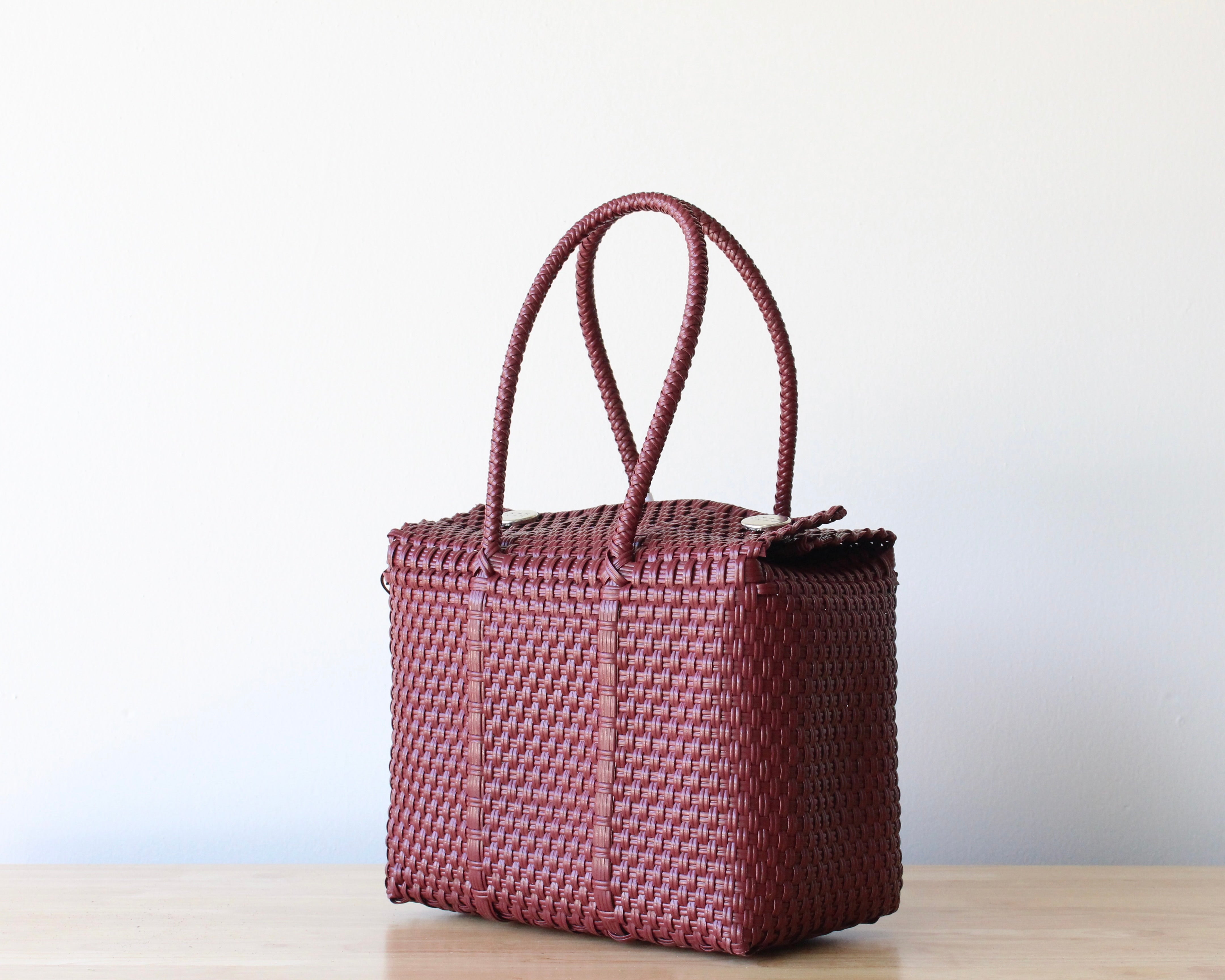 The bag is woven around a square-shaped wooden frame, providing a completely flat base that allows for easy support of all your belongingsAnswer