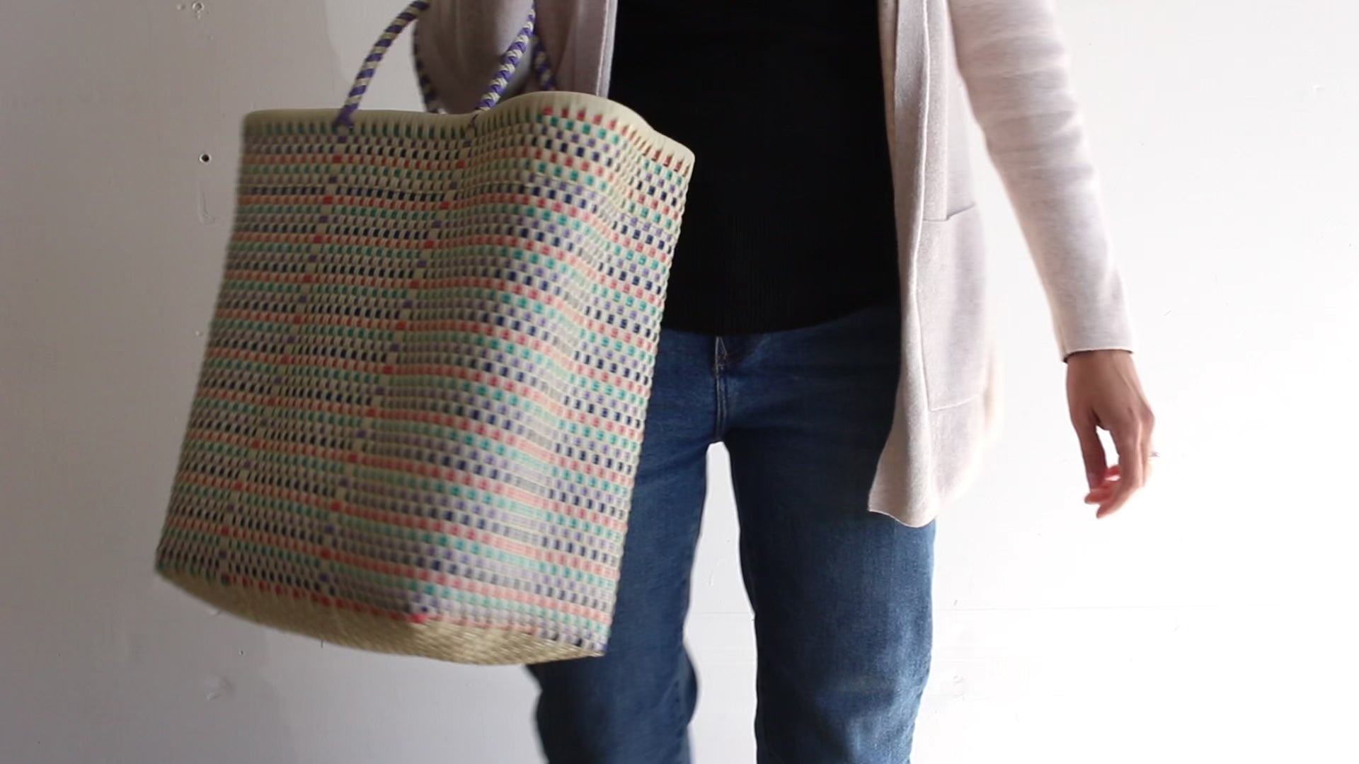 The bag is woven around a square-shaped wooden frame, providing a completely flat base that allows for easy support of all your belongingsAnswer