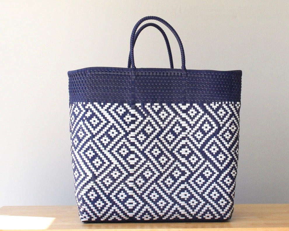 Meet the Costa Azul Grande Tote — navy and white, handwoven in Mexico, and ready for all your adventures. This bag is roomy enough for beach towels, snacks, toys, or a weekend getaway, but lightweight enough to carry easily on your shoulder.
