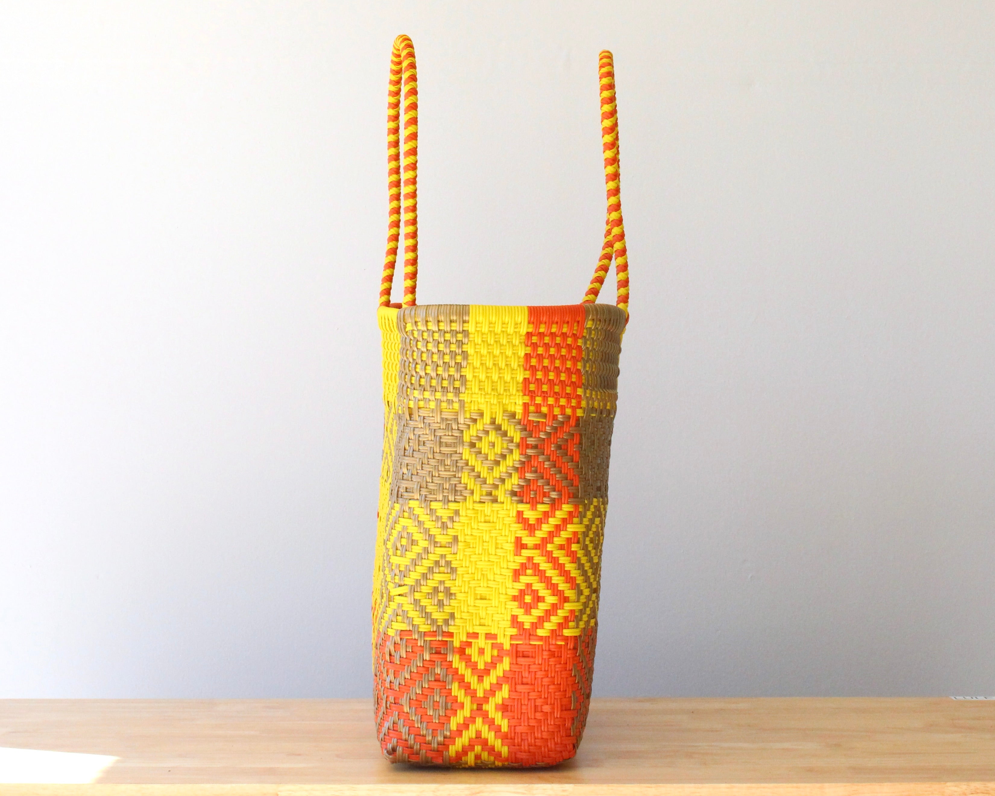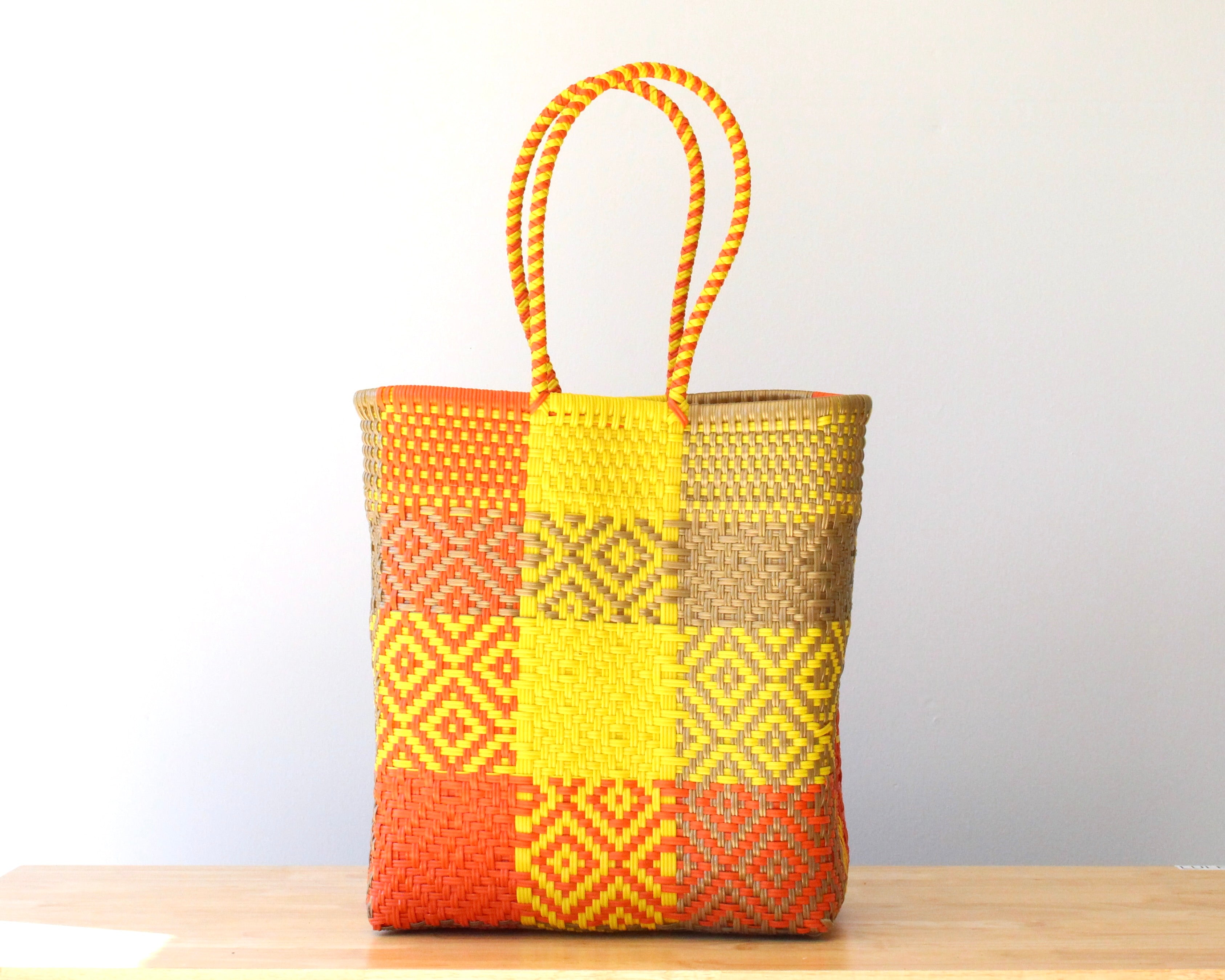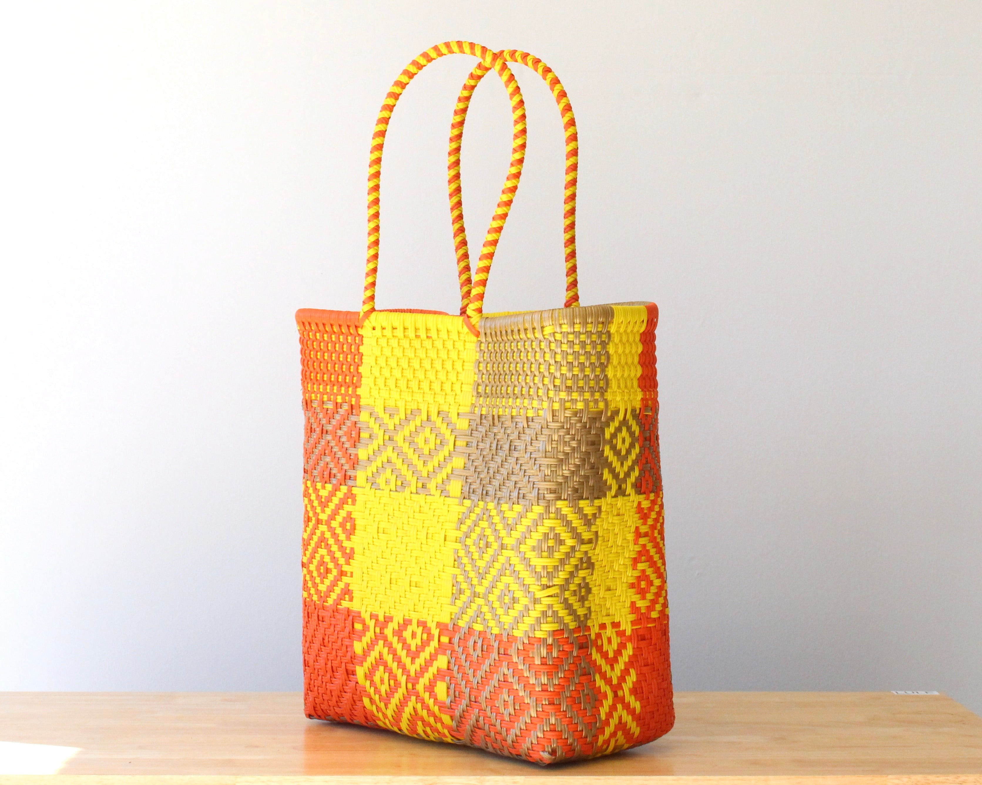 Handmade by skilled artisans, this Large bag (14” x 14” x 7”) offers plenty of space for all your essentials. Featuring a gorgeous multicolor diamond pattern on a yellow base, it’s perfect for adding a pop of color to any outfit. Whether for beach days, shopping, or travel, this tote is both stylish and practical.