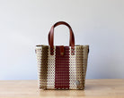 Vida Purse – Maroon, Gold & Beige Handwoven Purse with Leather Handles