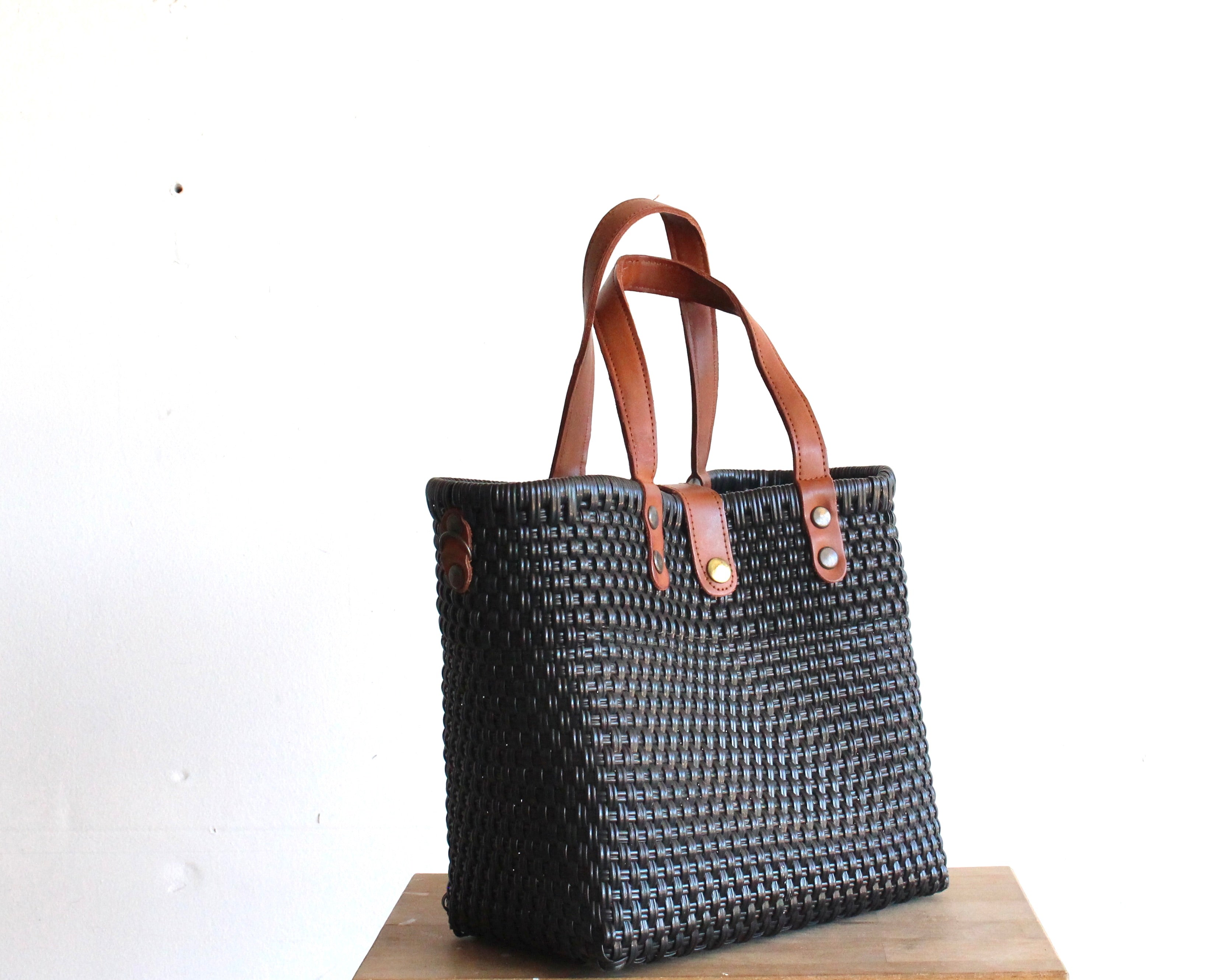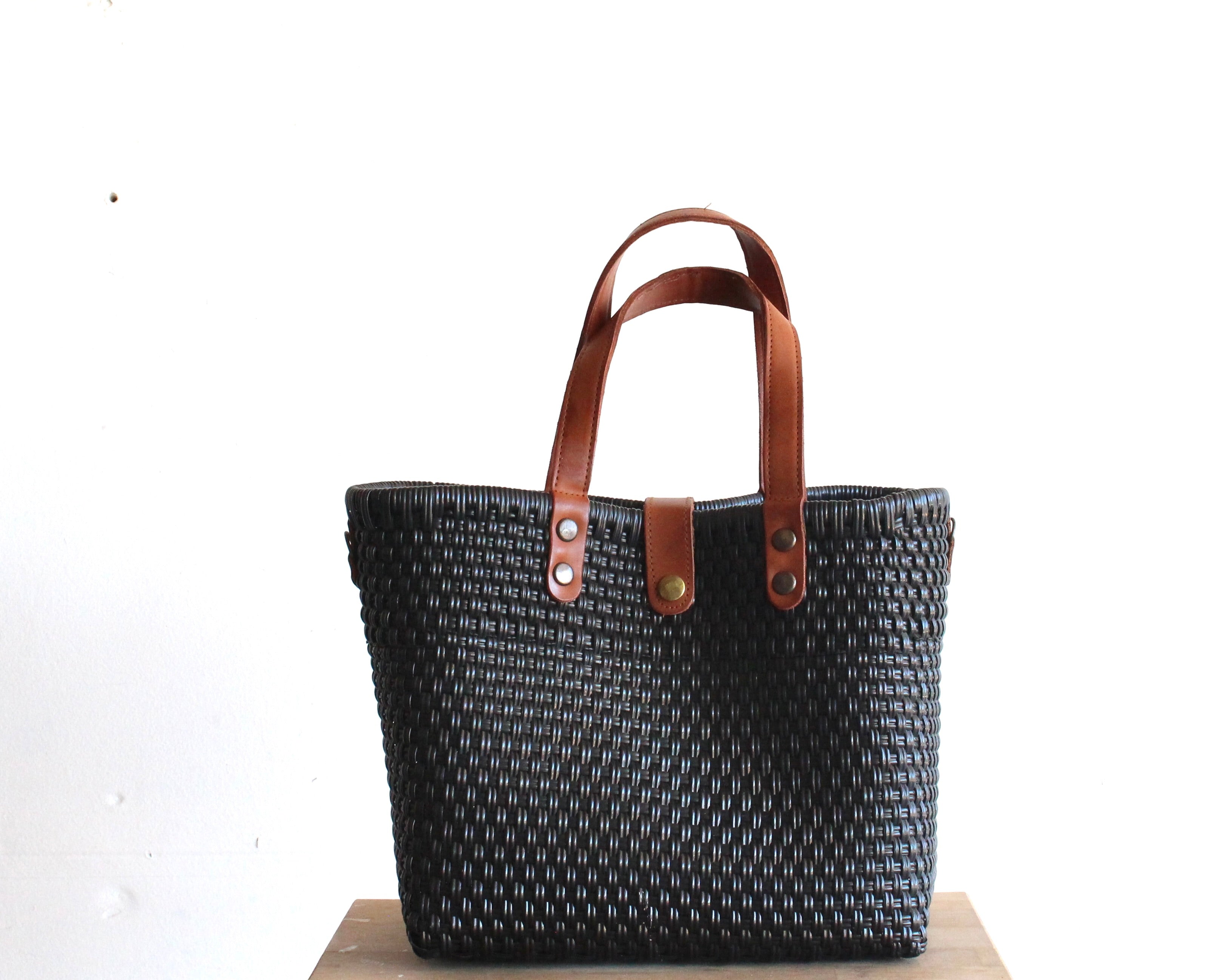 The bag is woven around a square-shaped wooden frame, providing a completely flat base that allows for easy support of all your belongingsAnswer