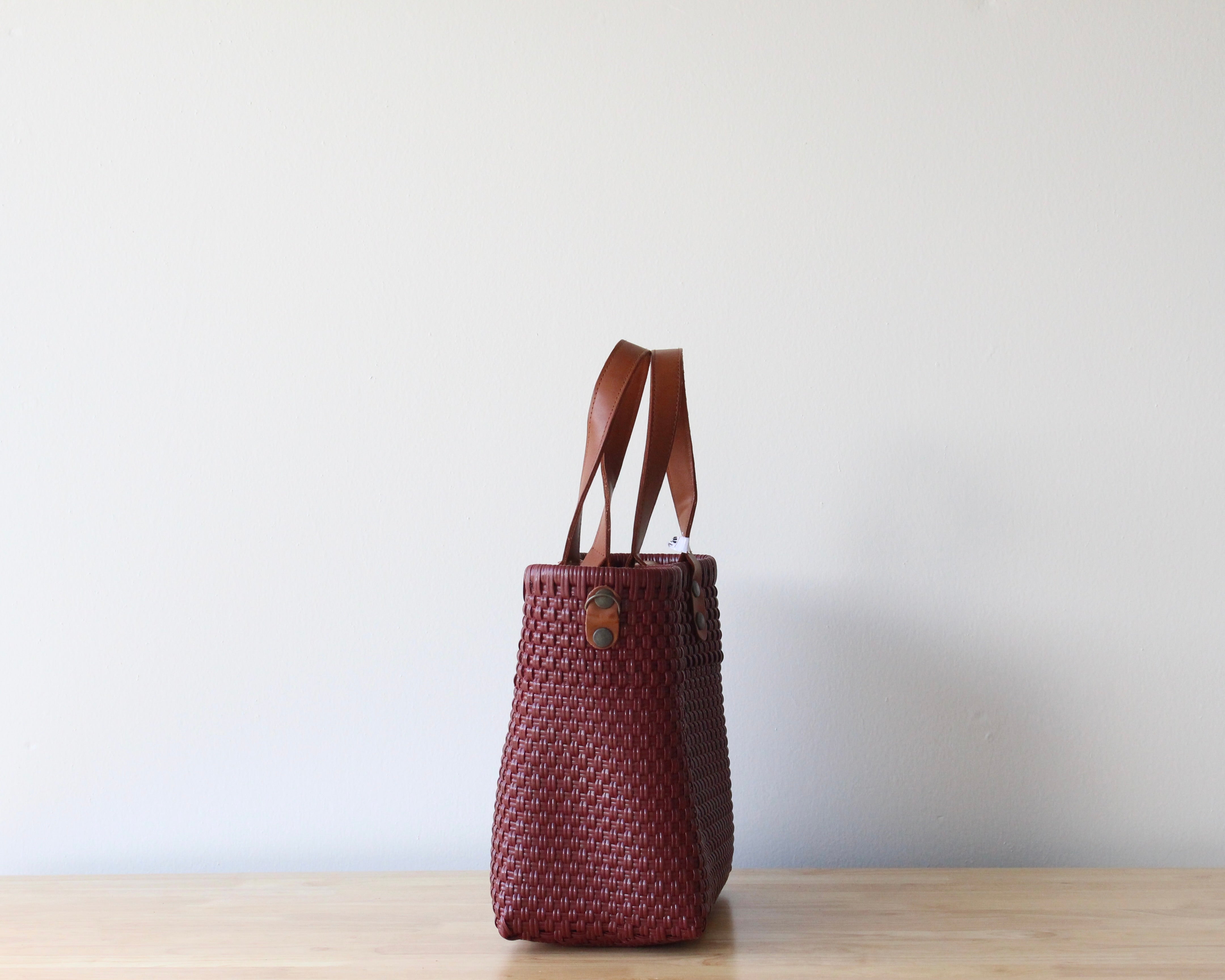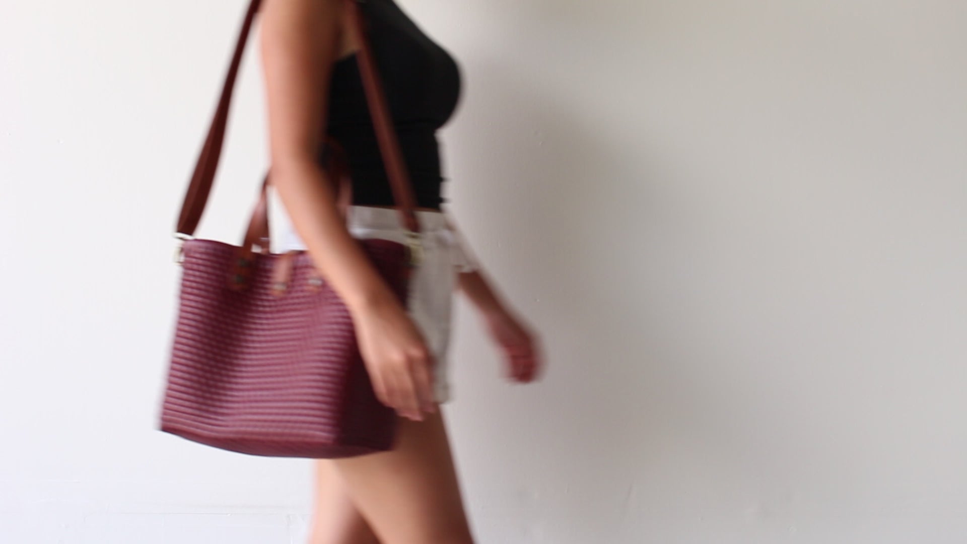 The bag is woven around a square-shaped wooden frame, providing a completely flat base that allows for easy support of all your belongingsAnswer