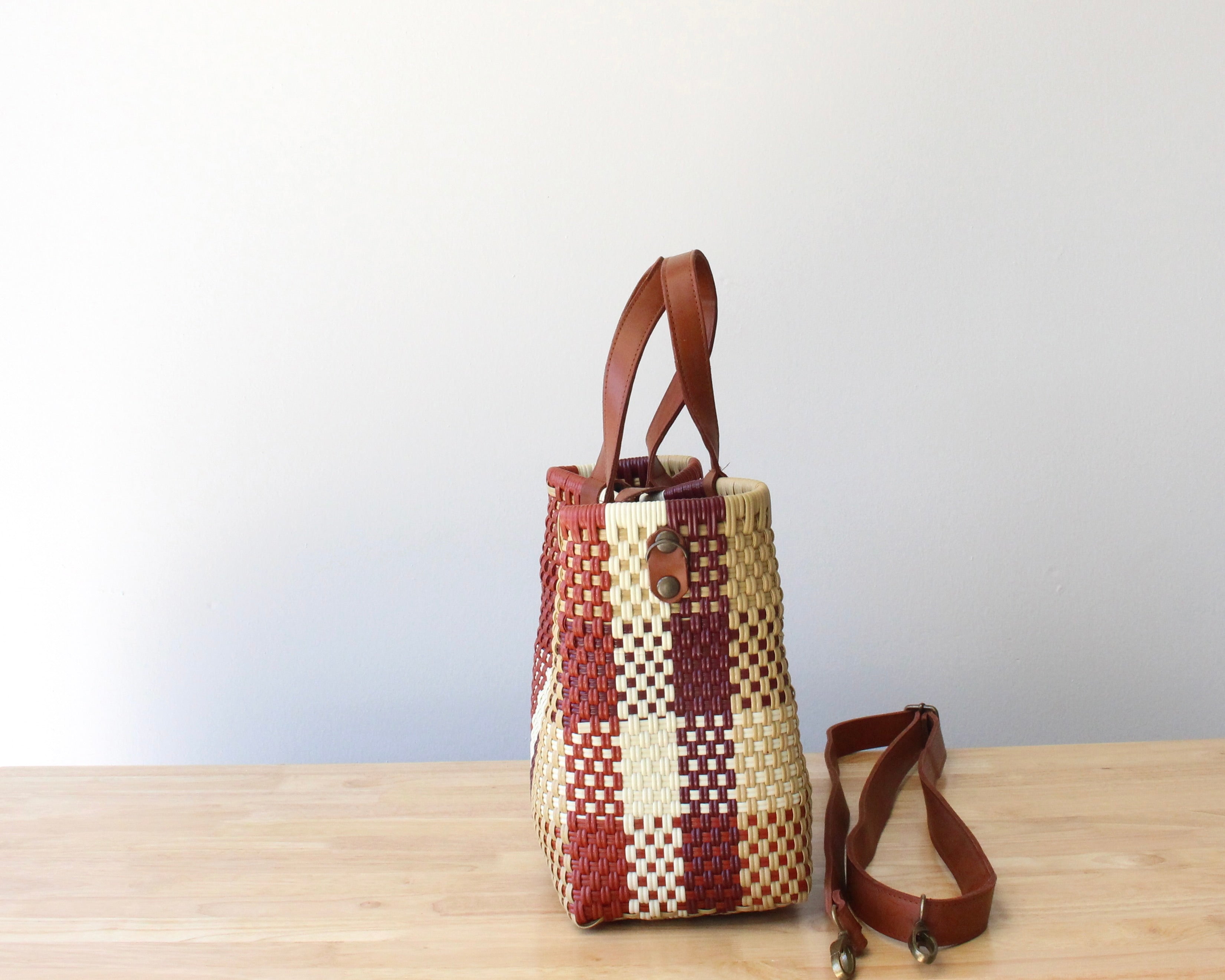 The bag is woven around a square-shaped wooden frame, providing a completely flat base that allows for easy support of all your belongingsAnswer
