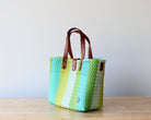 Fresh, fun, and ready to move — the Vida Purse in Lime & Aqua Stripes is a bold expression of color and craftsmanship. Handwoven in Mexico with 100% recycled plastic, this purse features vertical wide stripes in lime green, aqua, yellow, and white — like summer in a bag.
