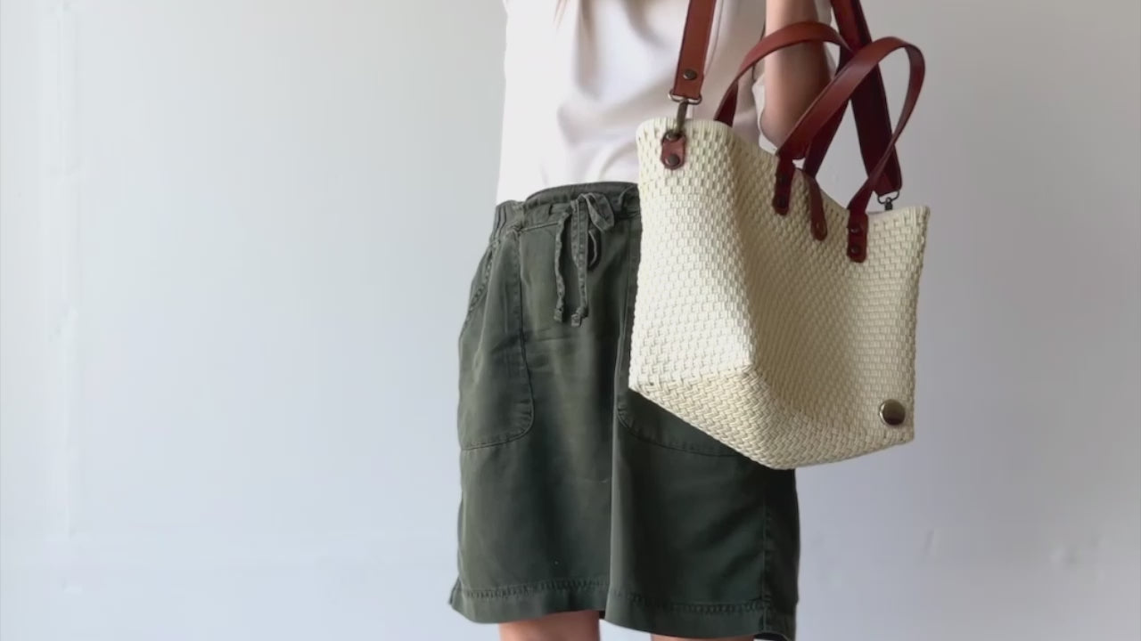 Finished with leather handles and a removable shoulder strap, it’s easy to carry whether you're off to the beach, the café, or the airport. Lightweight, sturdy, and made to brighten your every day.