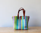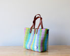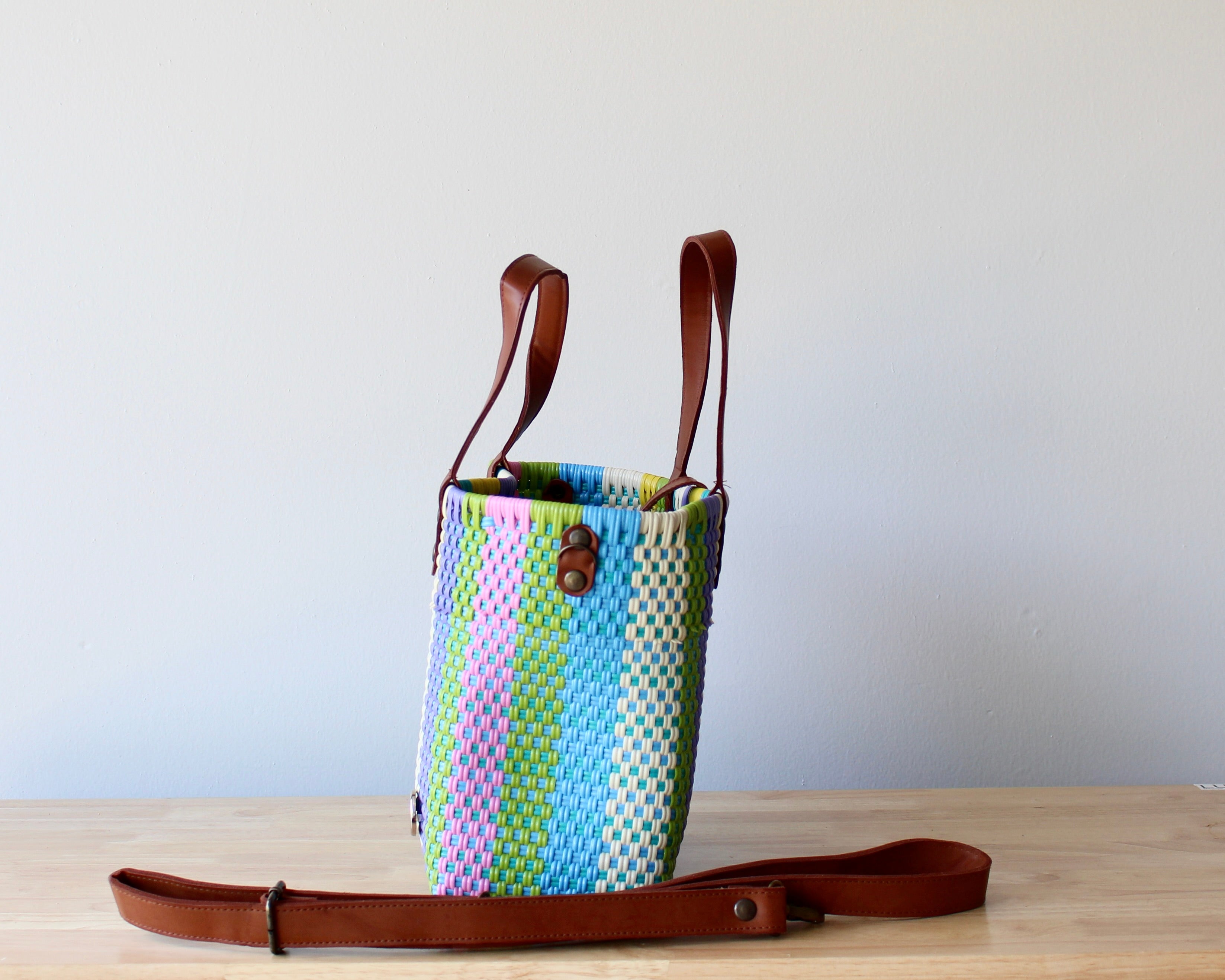 Crafted by artisan hands in Mexico using recycled plastic, it’s finished with genuine leather handles and a removable shoulder strap for extra comfort. Spacious, lightweight, and full of color — it’s made to go wherever you do.