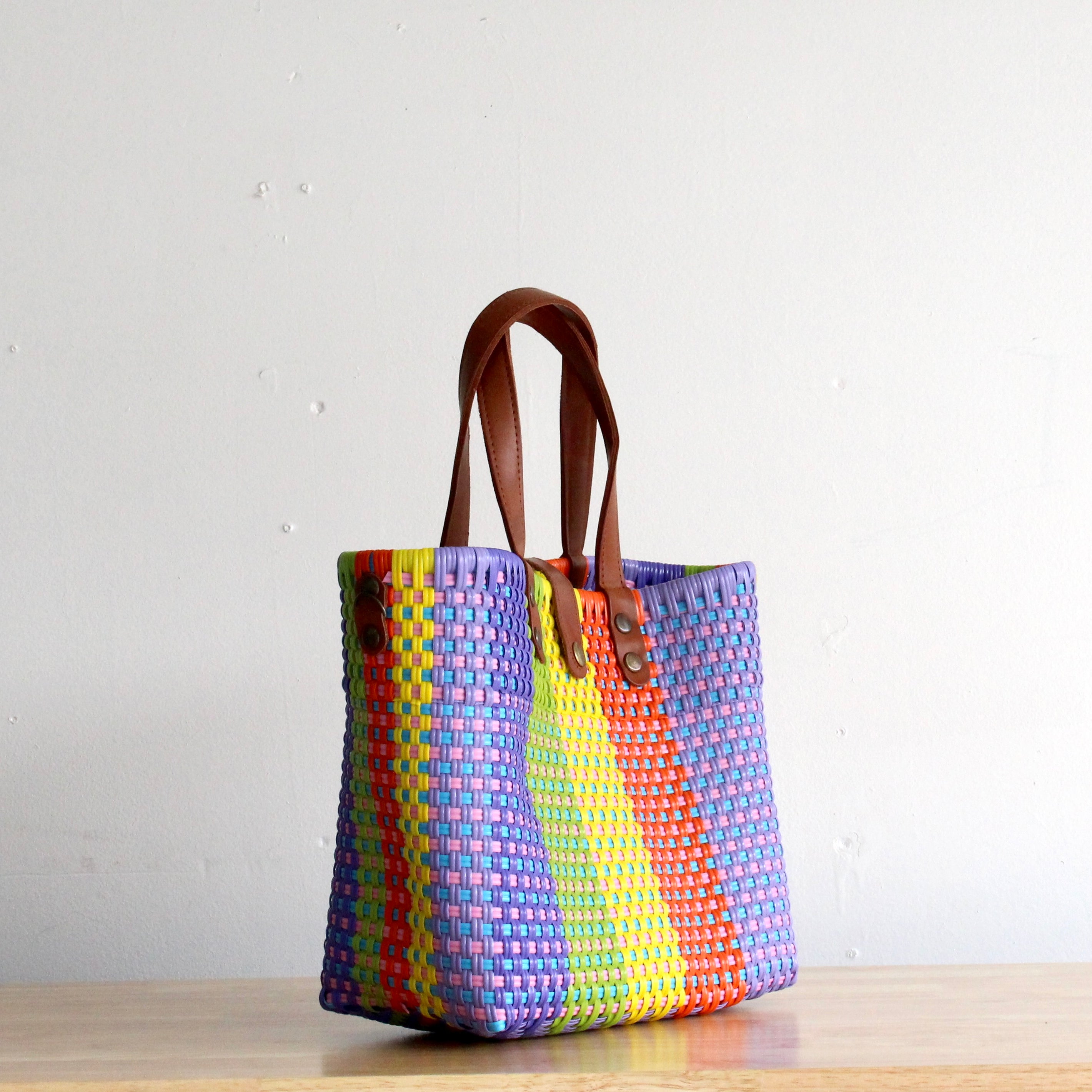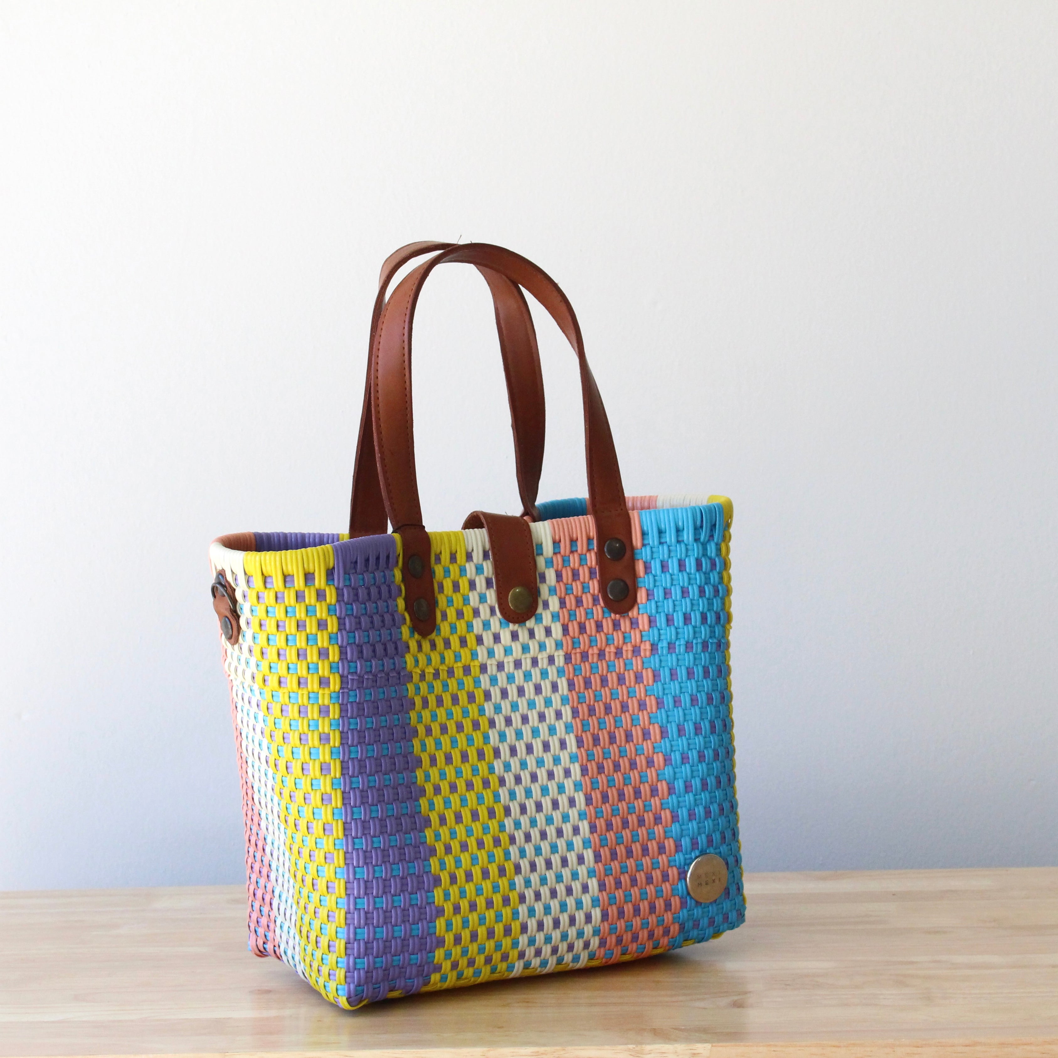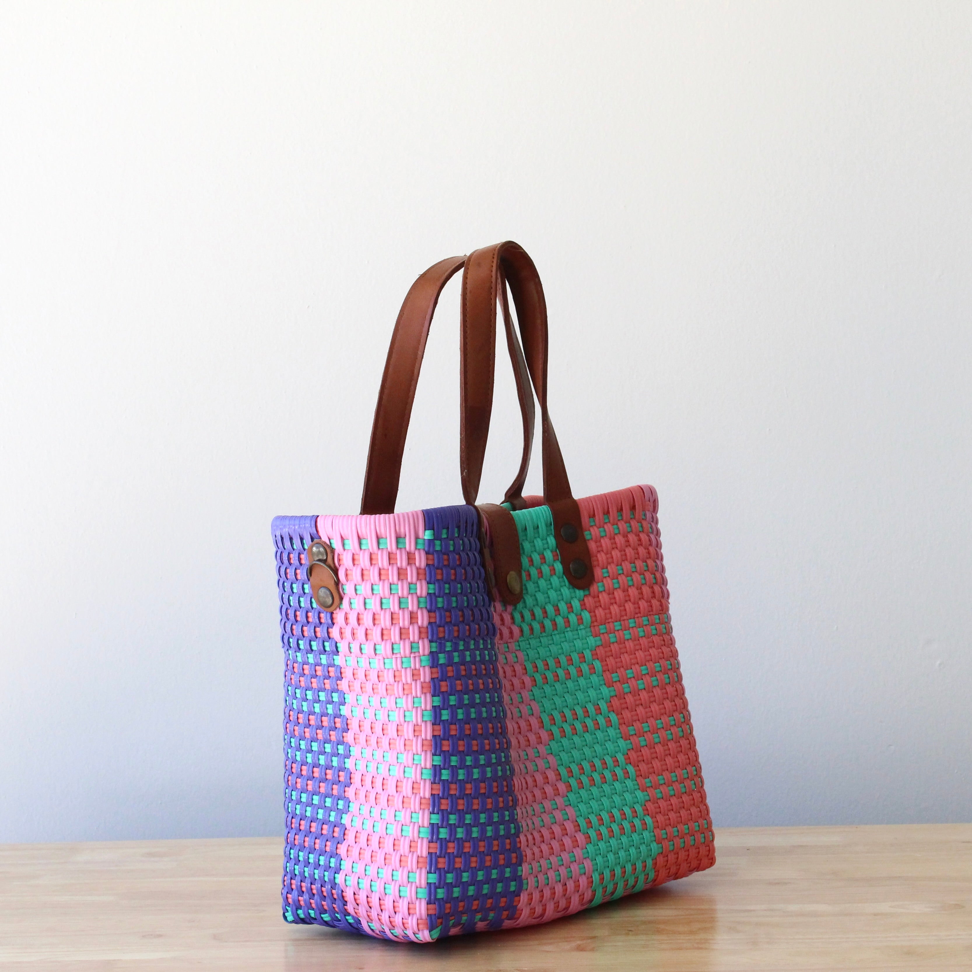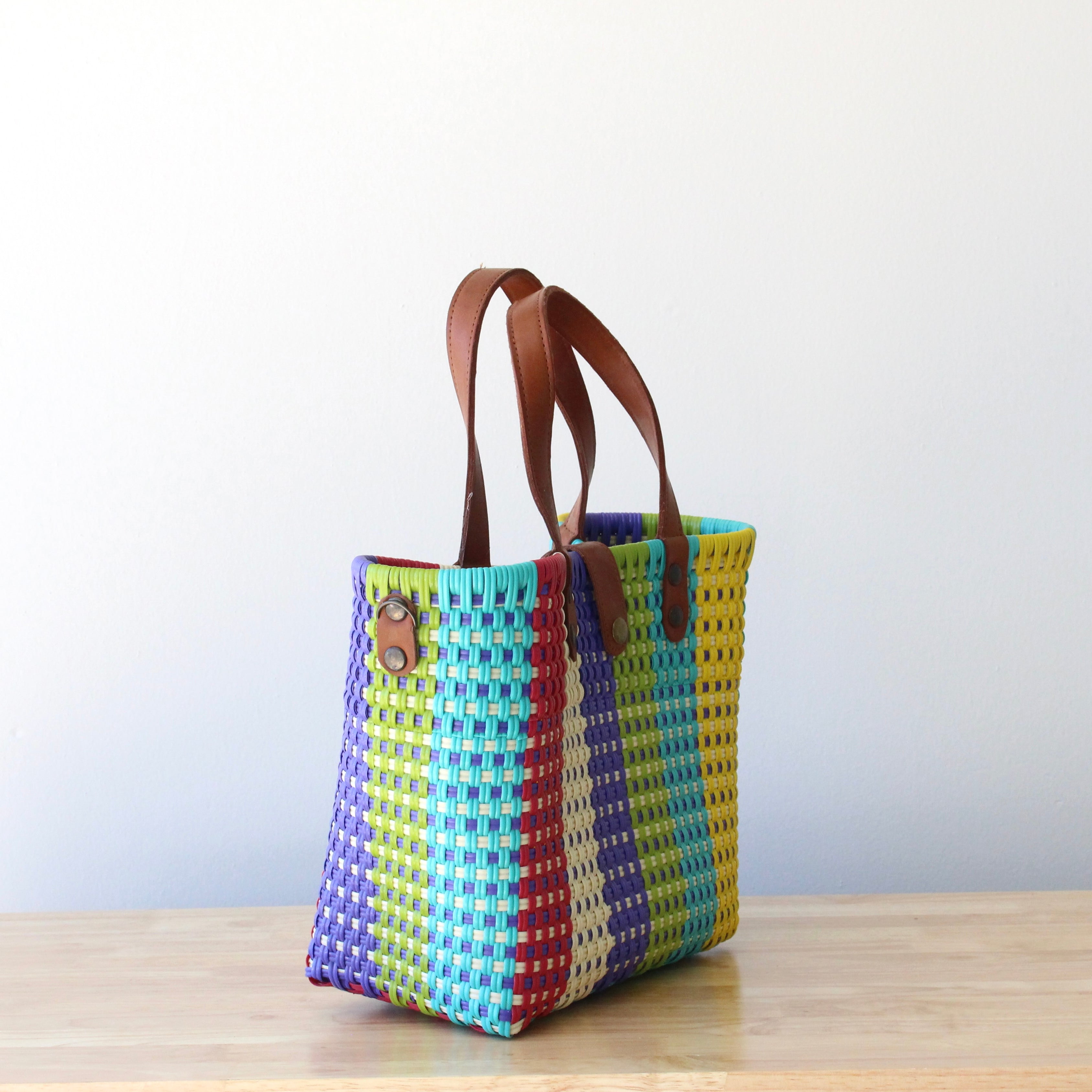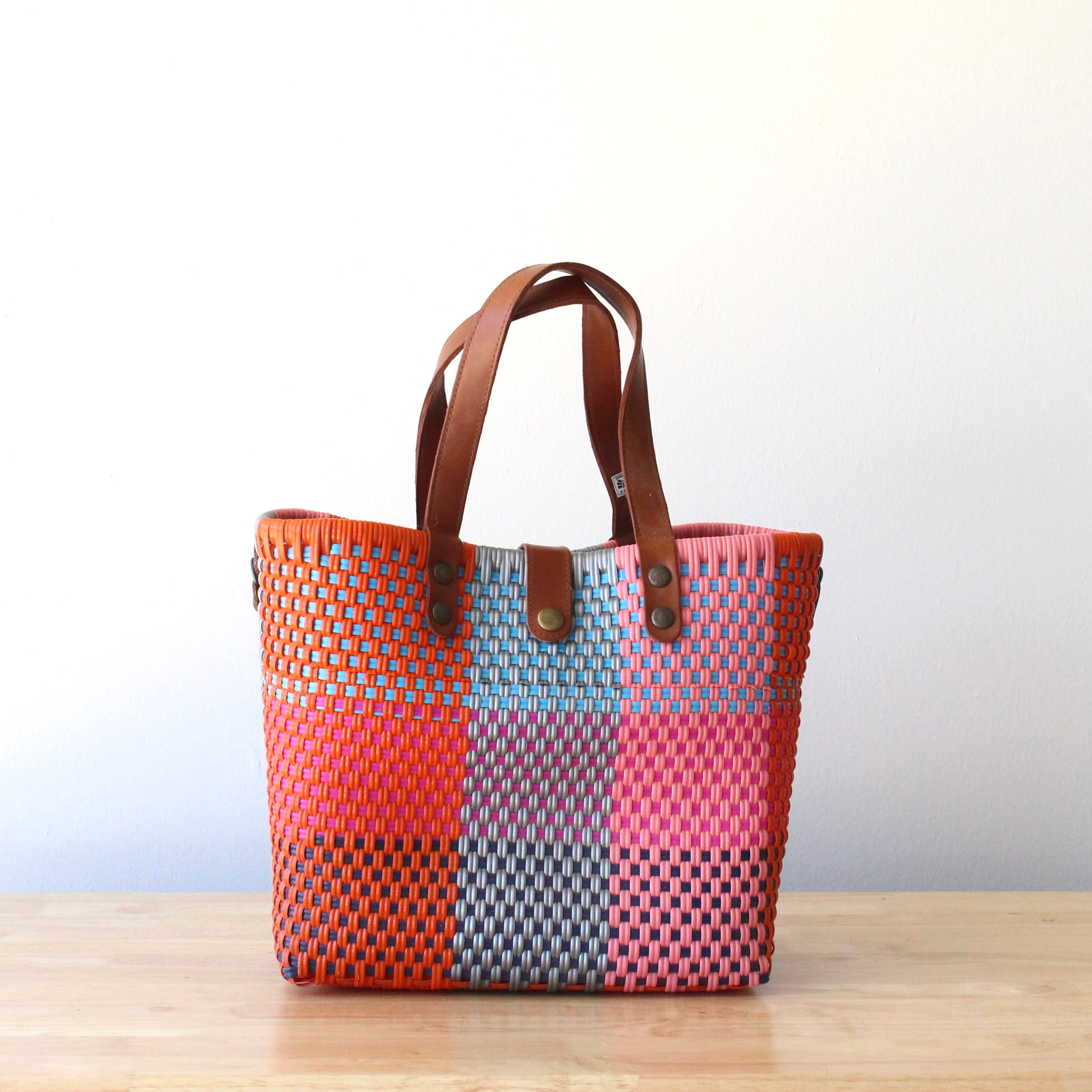 Our handmade purses are crafted with recycled plastic, finished with strong leather handles and a removable leather strap. Each medium-size purse (10 x 7 x 5 inches) is lightweight, durable, and one-of-a-kind. Perfect for everyday use, travel, the city, or the outdoors—these bags are ready for dust, wind, and water while keeping your style unique and artisanal. Pre-order your favorite best sellers and enjoy worldwide shipping straight from Texas.