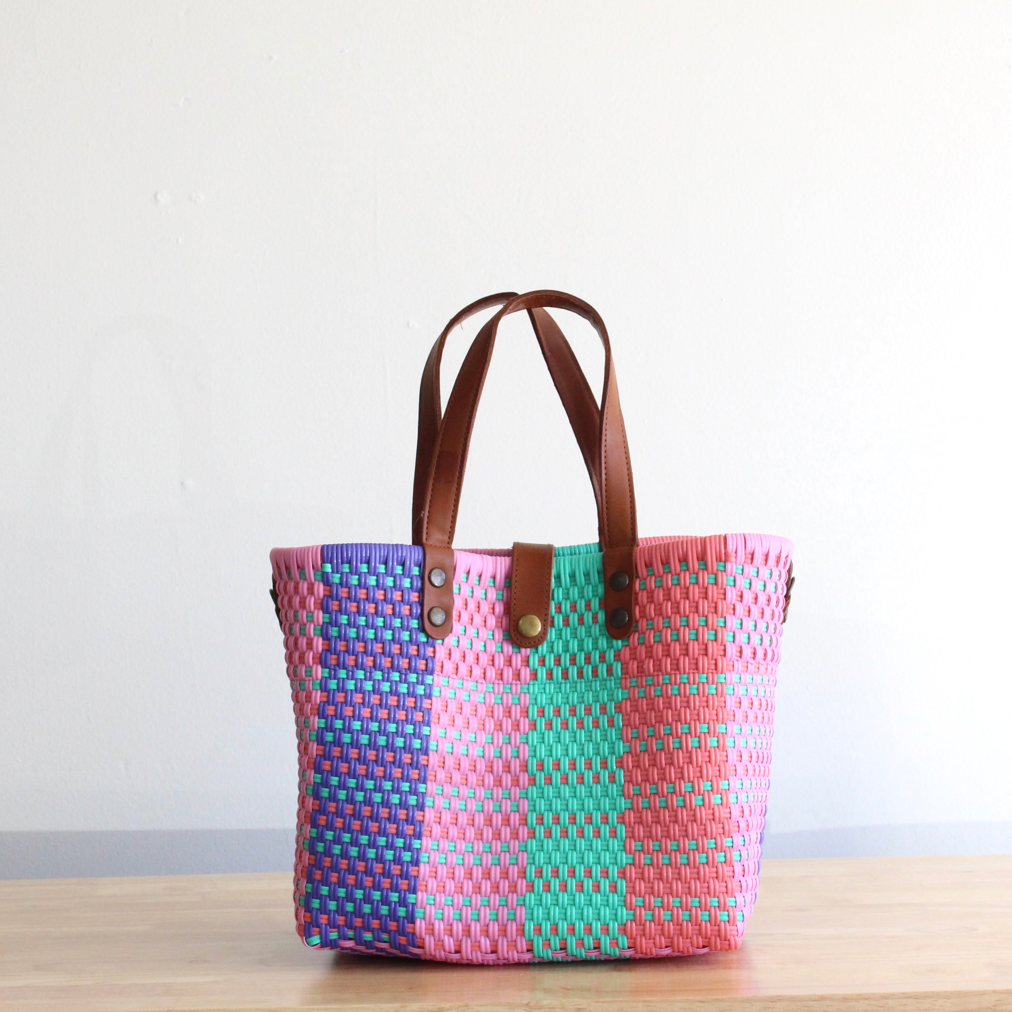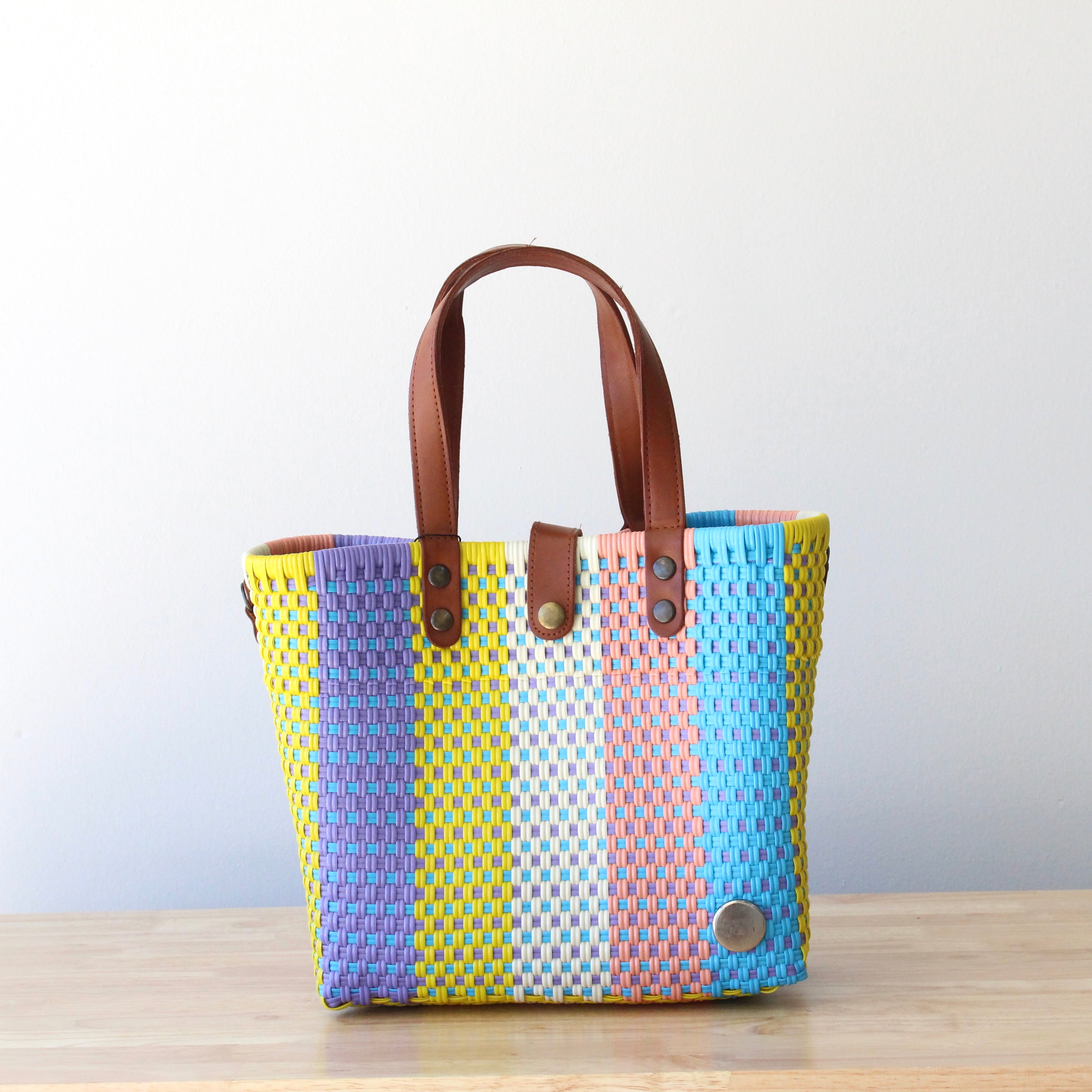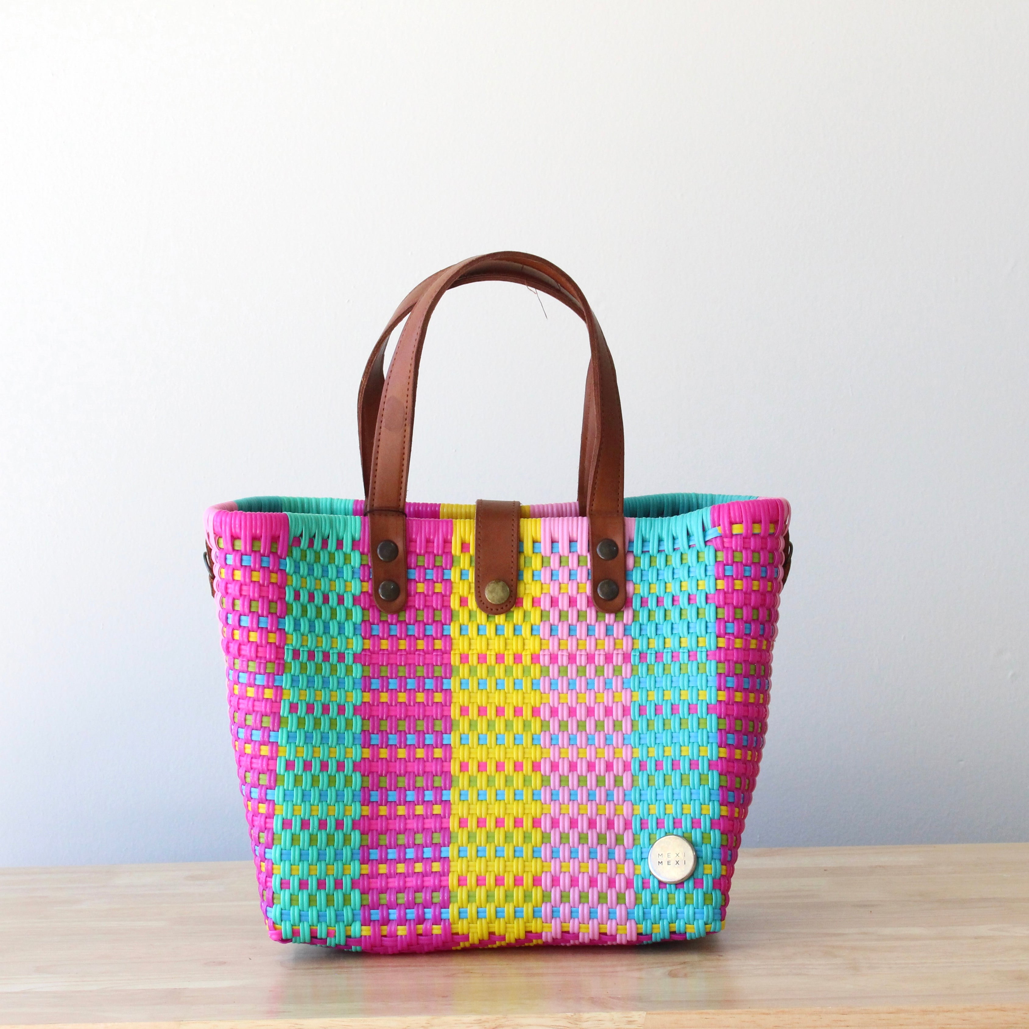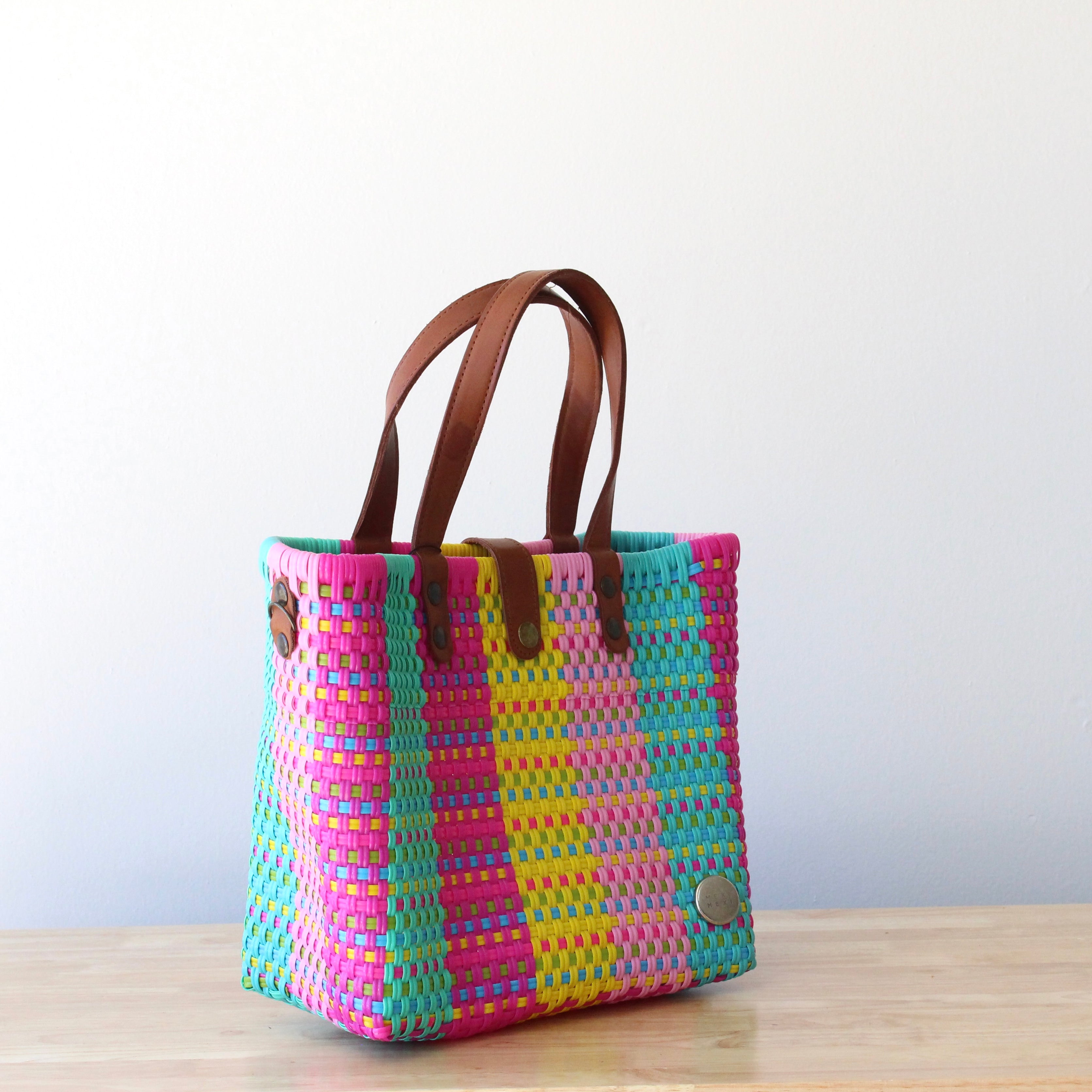 Our handmade purses are crafted with recycled plastic, finished with strong leather handles and a removable leather strap. Each medium-size purse (10 x 7 x 5 inches) is lightweight, durable, and one-of-a-kind. Perfect for everyday use, travel, the city, or the outdoors—these bags are ready for dust, wind, and water while keeping your style unique and artisanal. Pre-order your favorite best sellers and enjoy worldwide shipping straight from Texas.