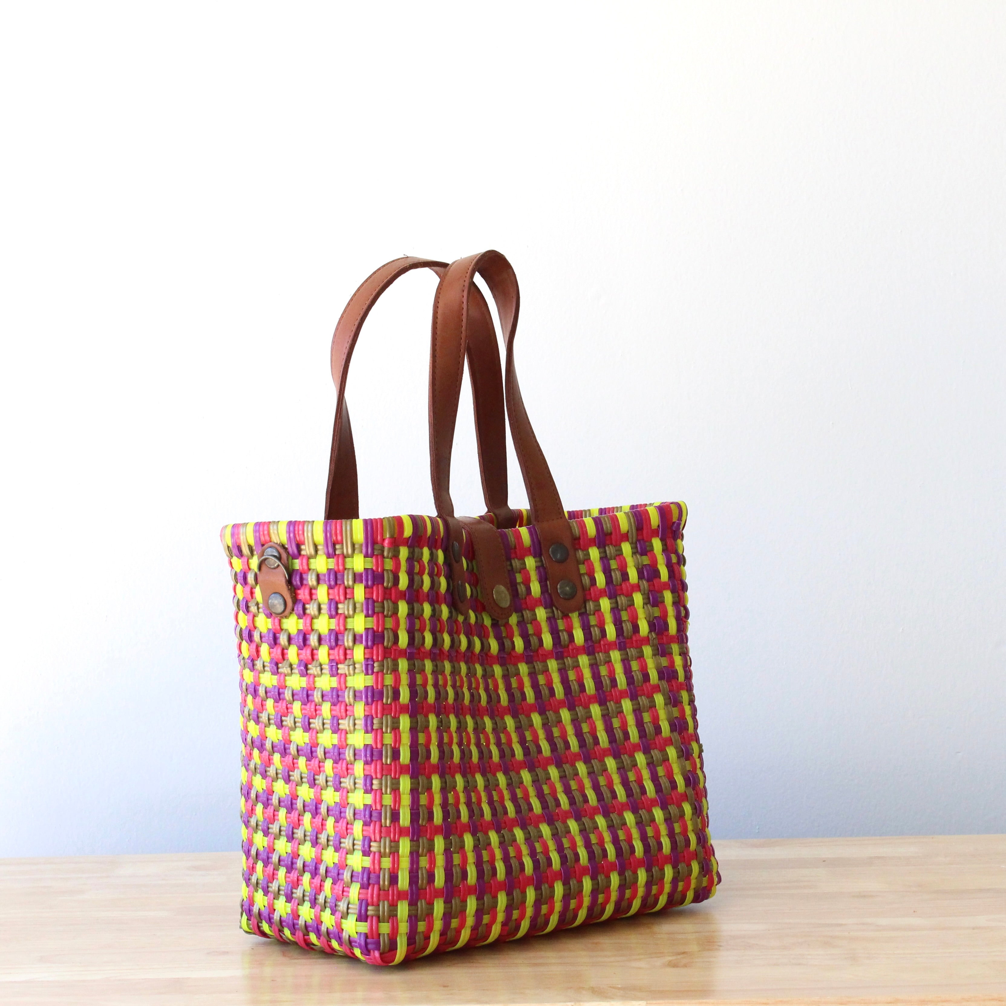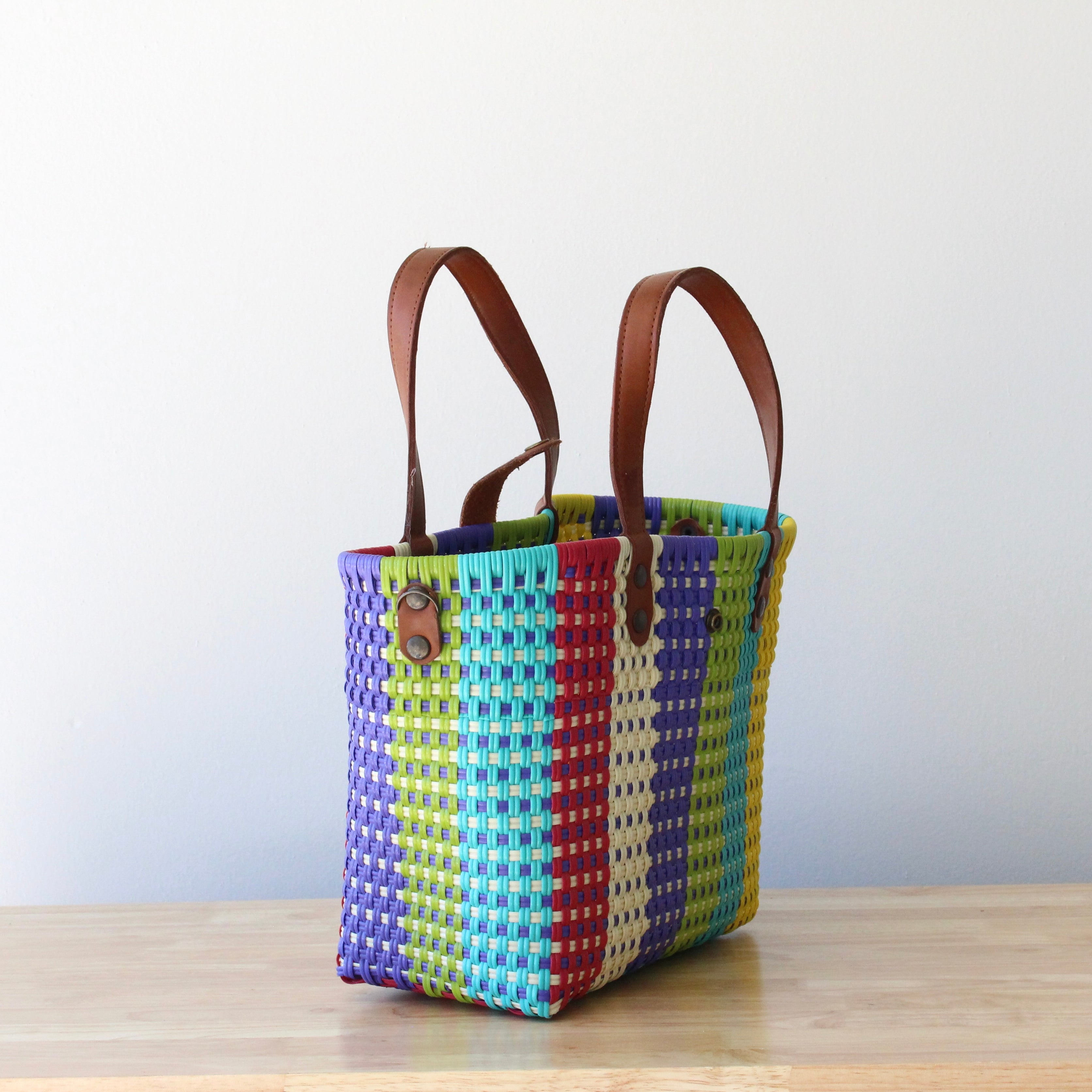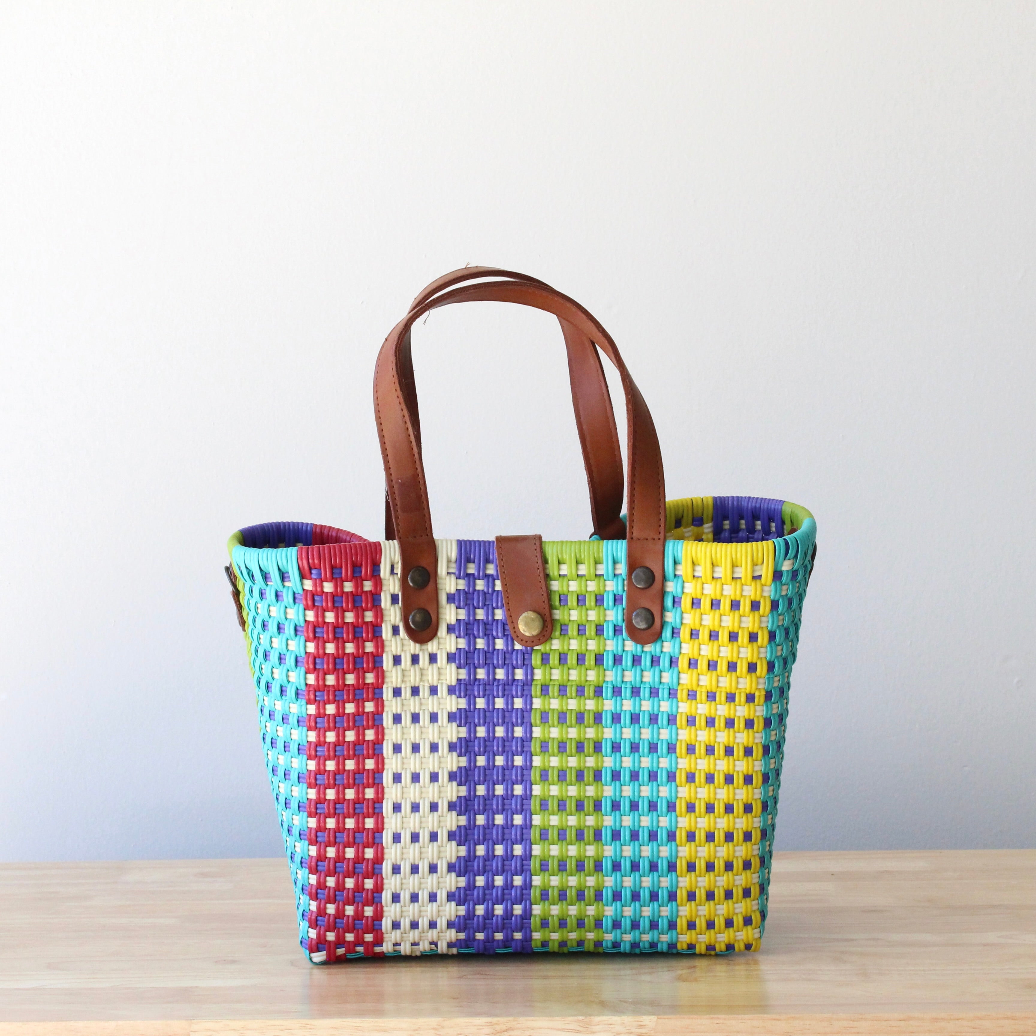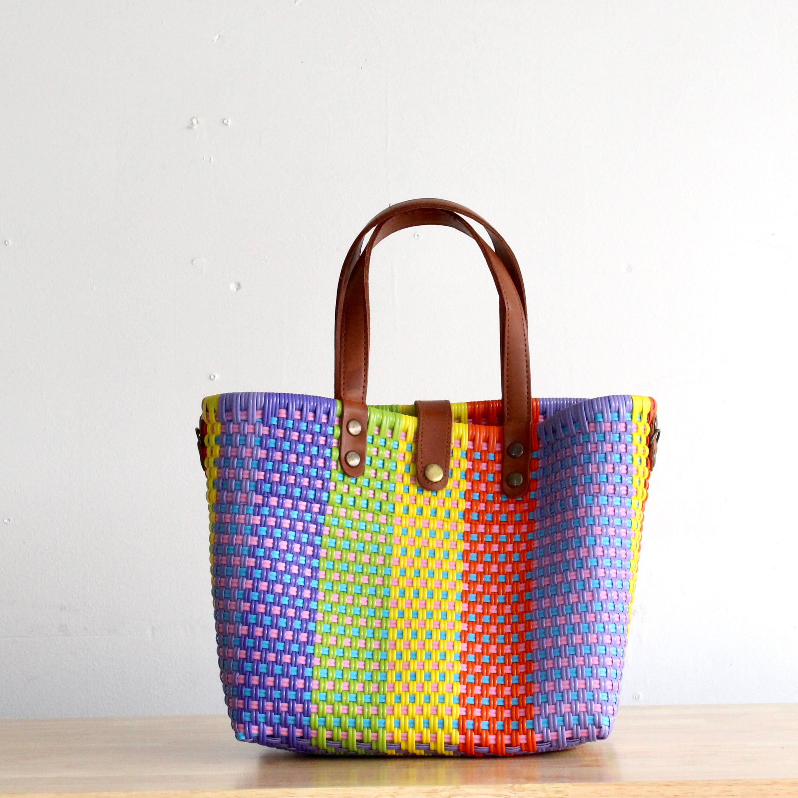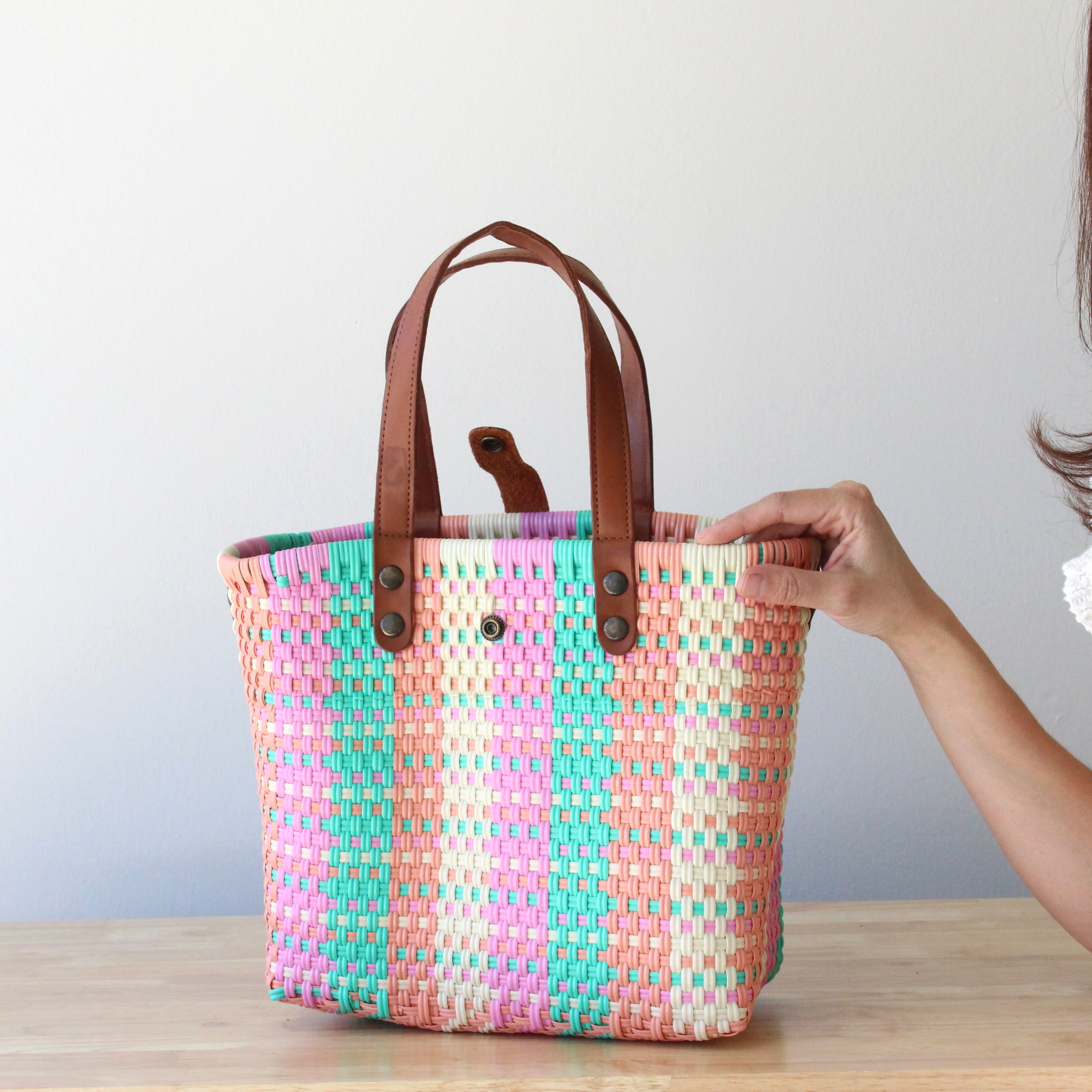 Our handmade purses are crafted with recycled plastic, finished with strong leather handles and a removable leather strap. Each medium-size purse (10 x 7 x 5 inches) is lightweight, durable, and one-of-a-kind. Perfect for everyday use, travel, the city, or the outdoors—these bags are ready for dust, wind, and water while keeping your style unique and artisanal. Pre-order your favorite best sellers and enjoy worldwide shipping straight from Texas.