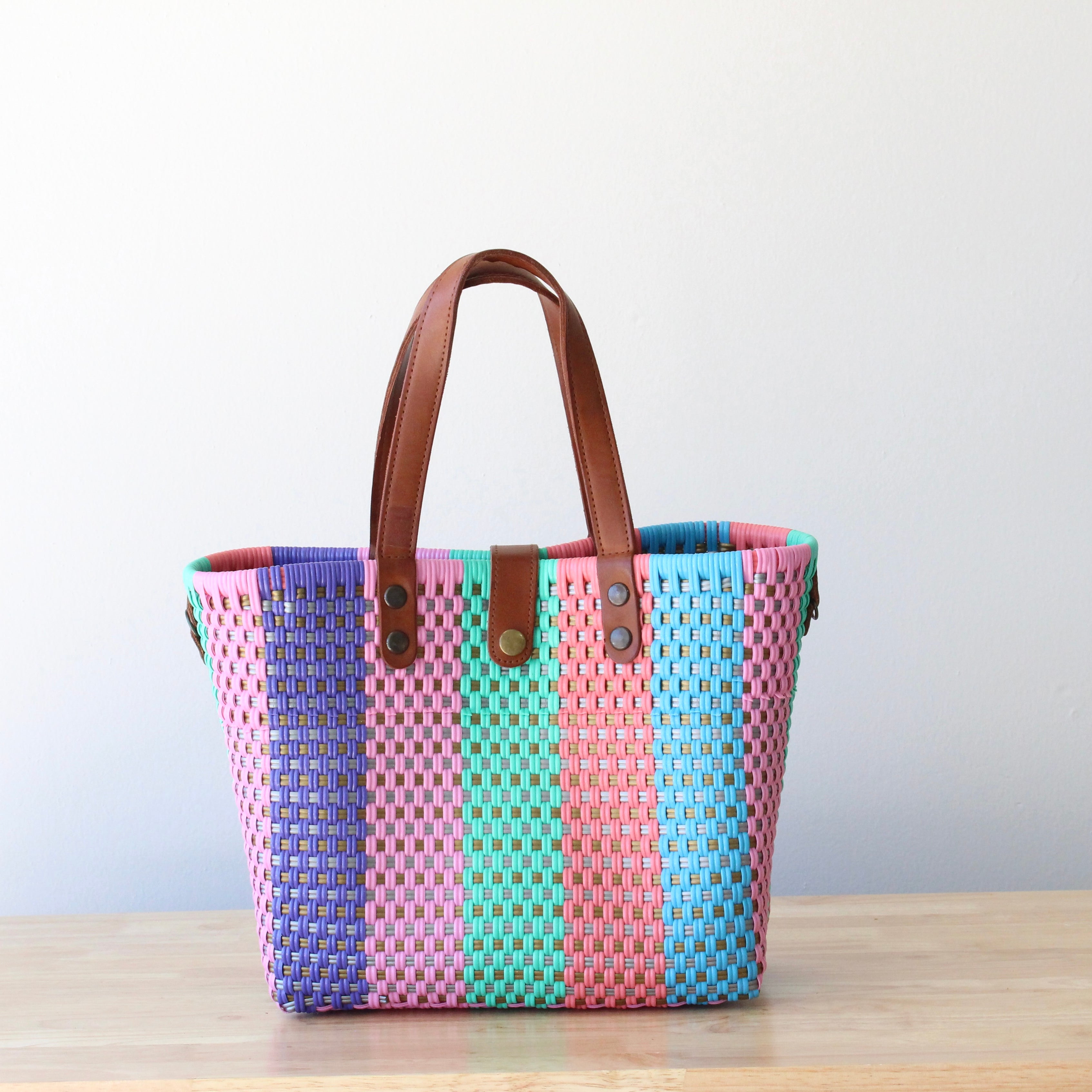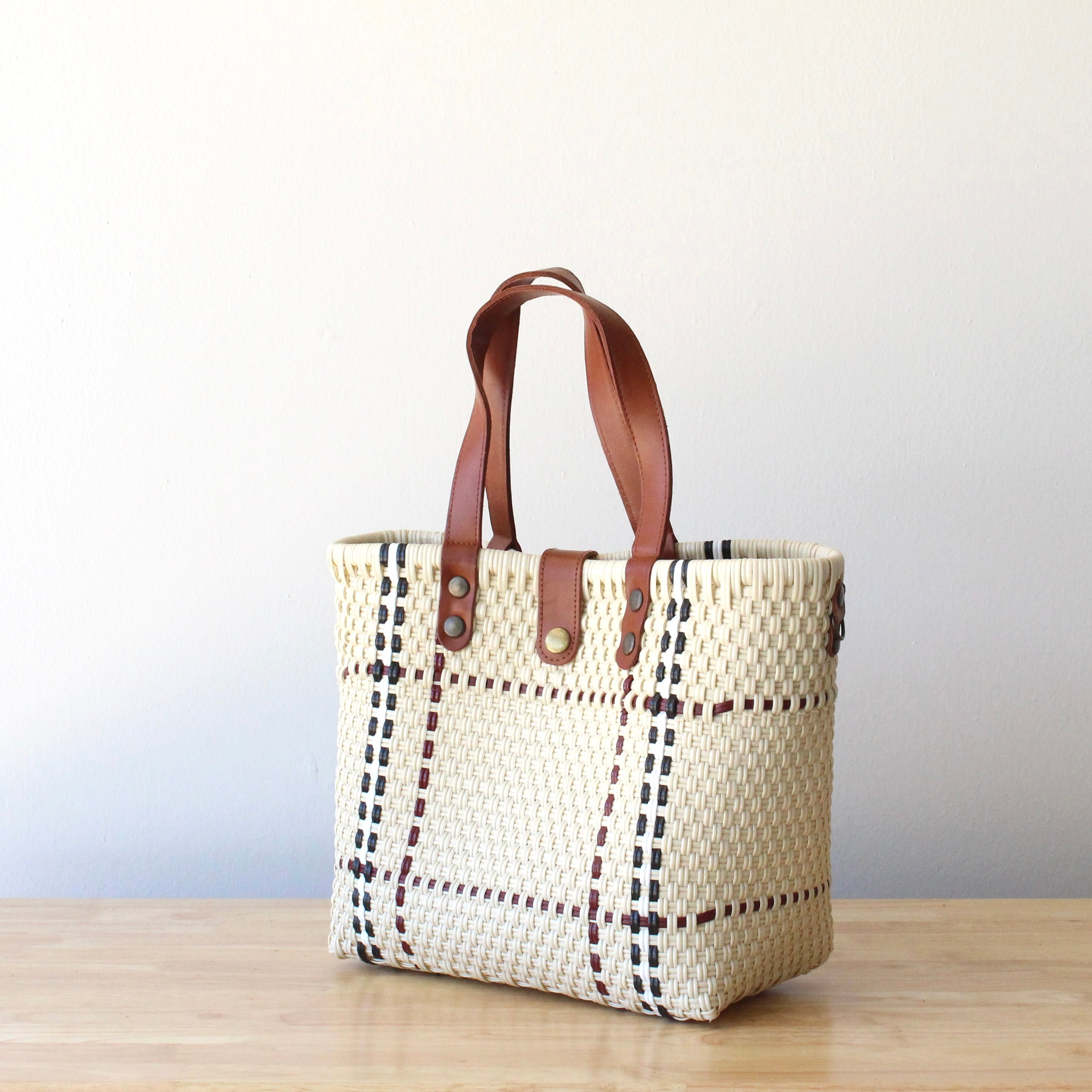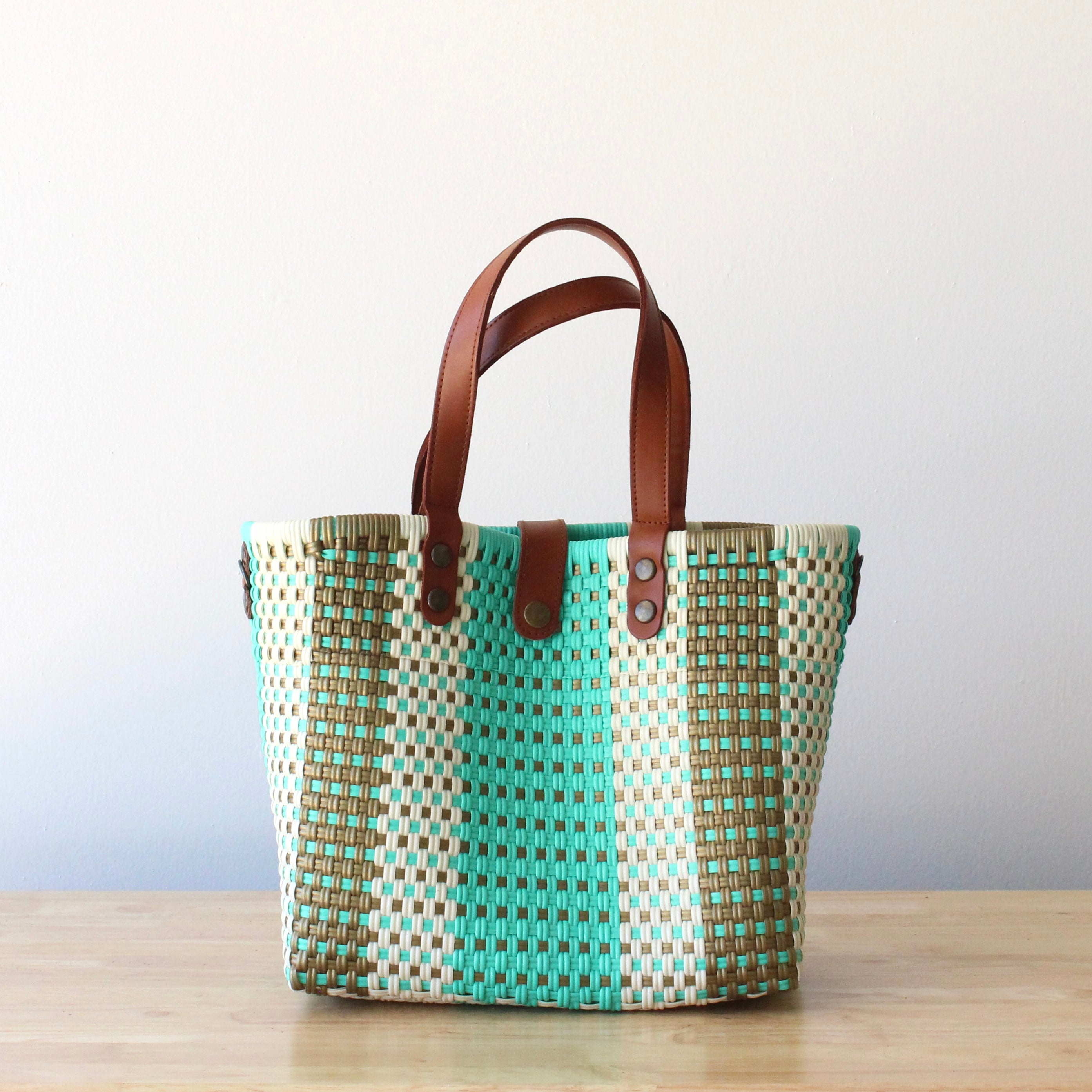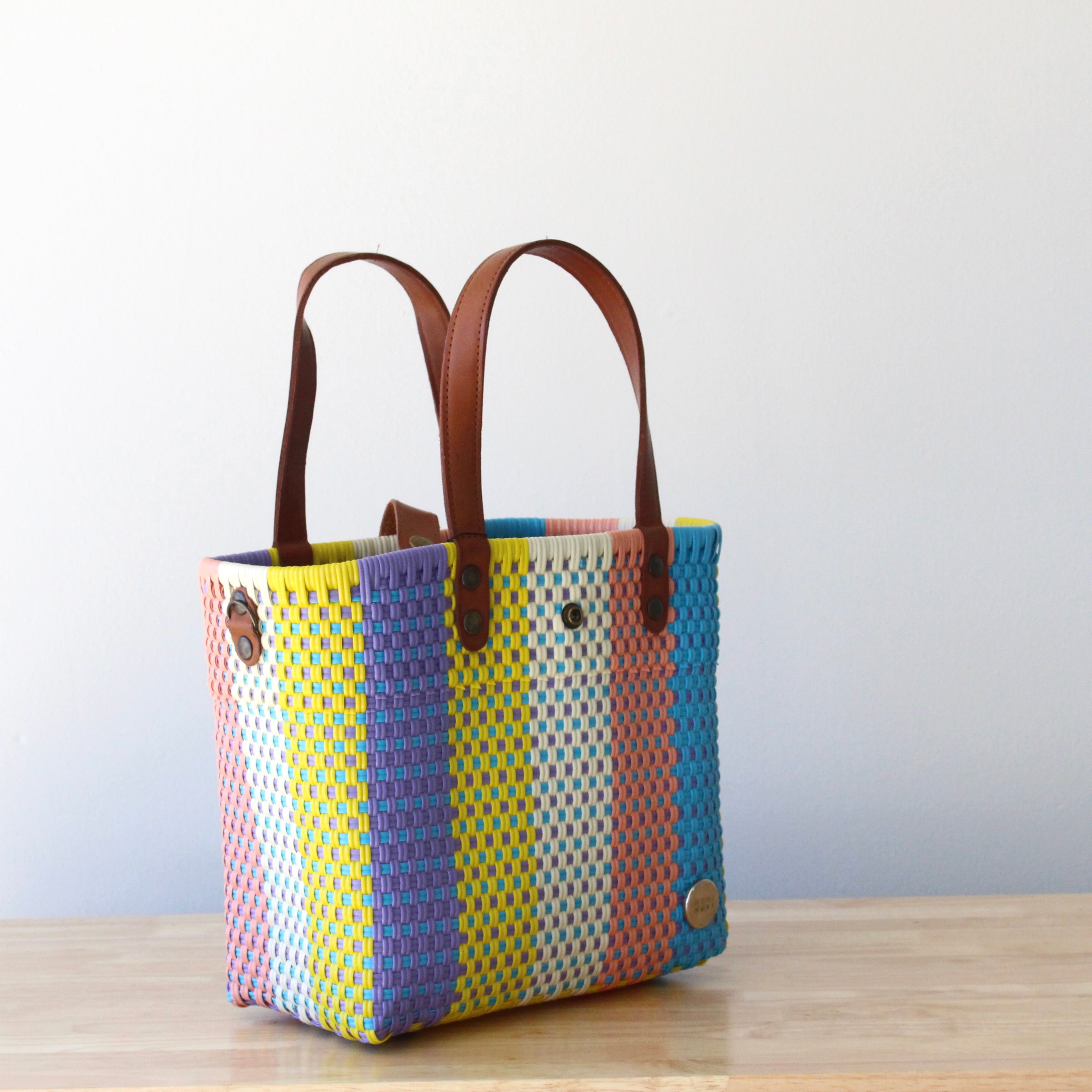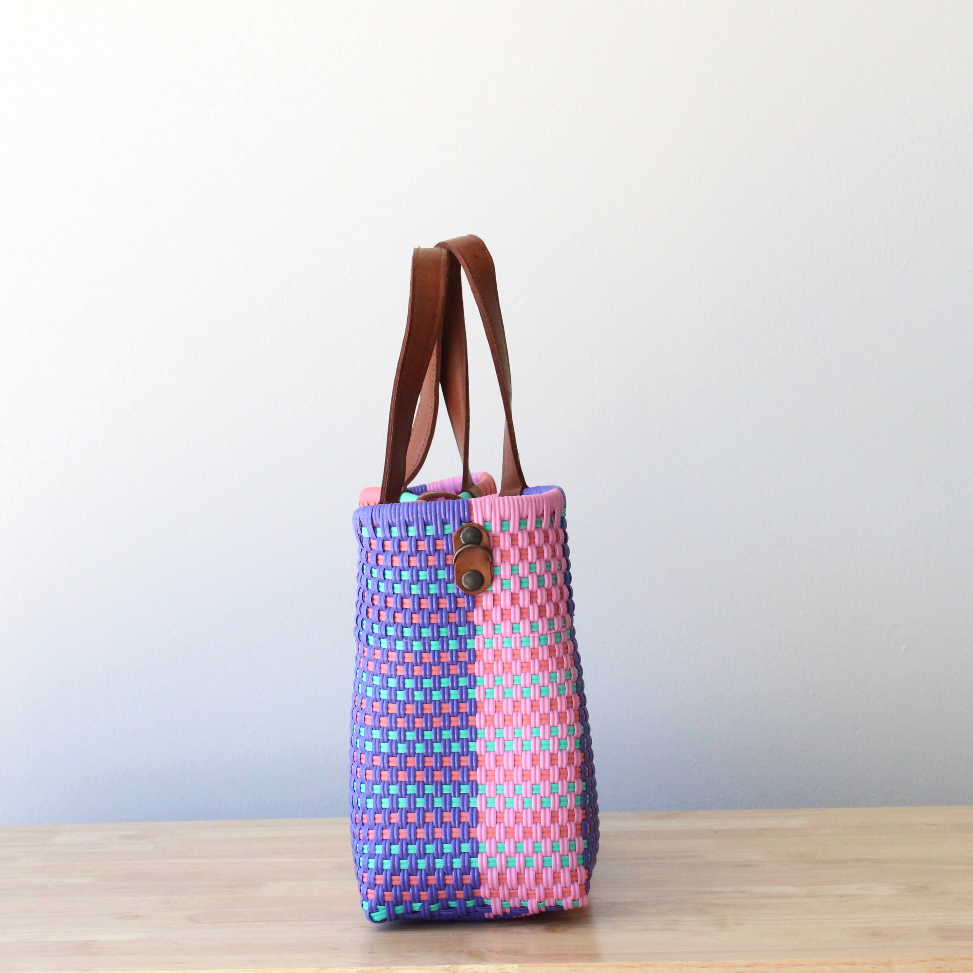 Our handmade purses are crafted with recycled plastic, finished with strong leather handles and a removable leather strap. Each medium-size purse (10 x 7 x 5 inches) is lightweight, durable, and one-of-a-kind. Perfect for everyday use, travel, the city, or the outdoors—these bags are ready for dust, wind, and water while keeping your style unique and artisanal. Pre-order your favorite best sellers and enjoy worldwide shipping straight from Texas.