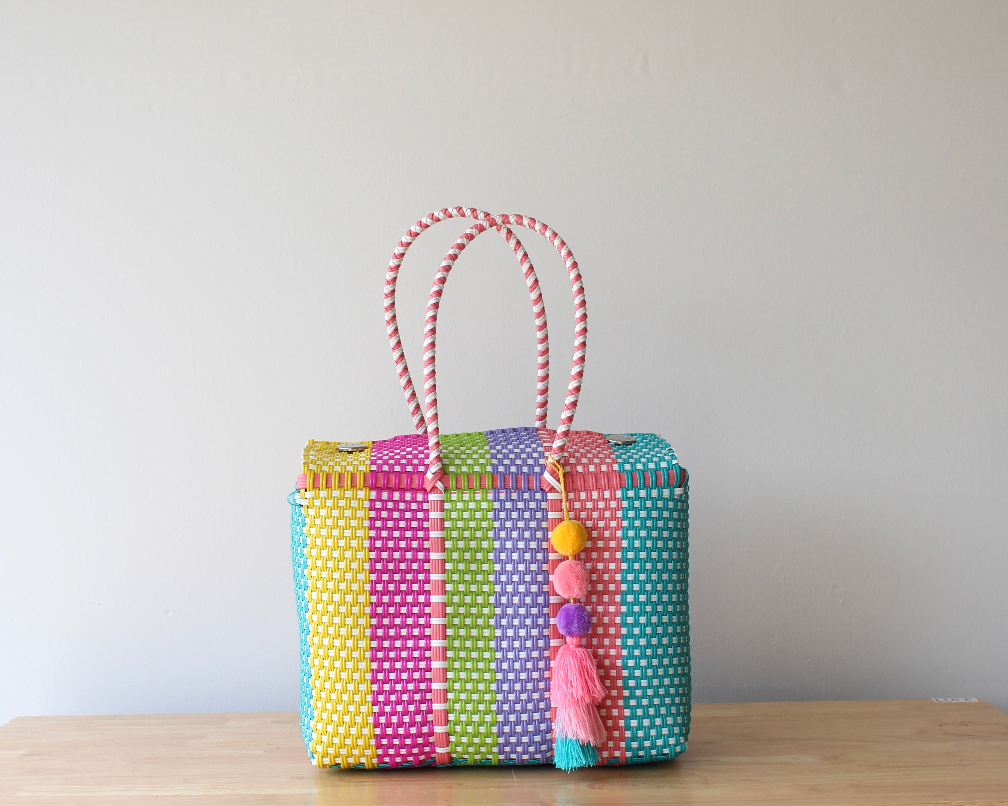 This medium handwoven handbag is a beautiful example of Mexican craftsmanship, carefully made by our team of artisans in Mexico.