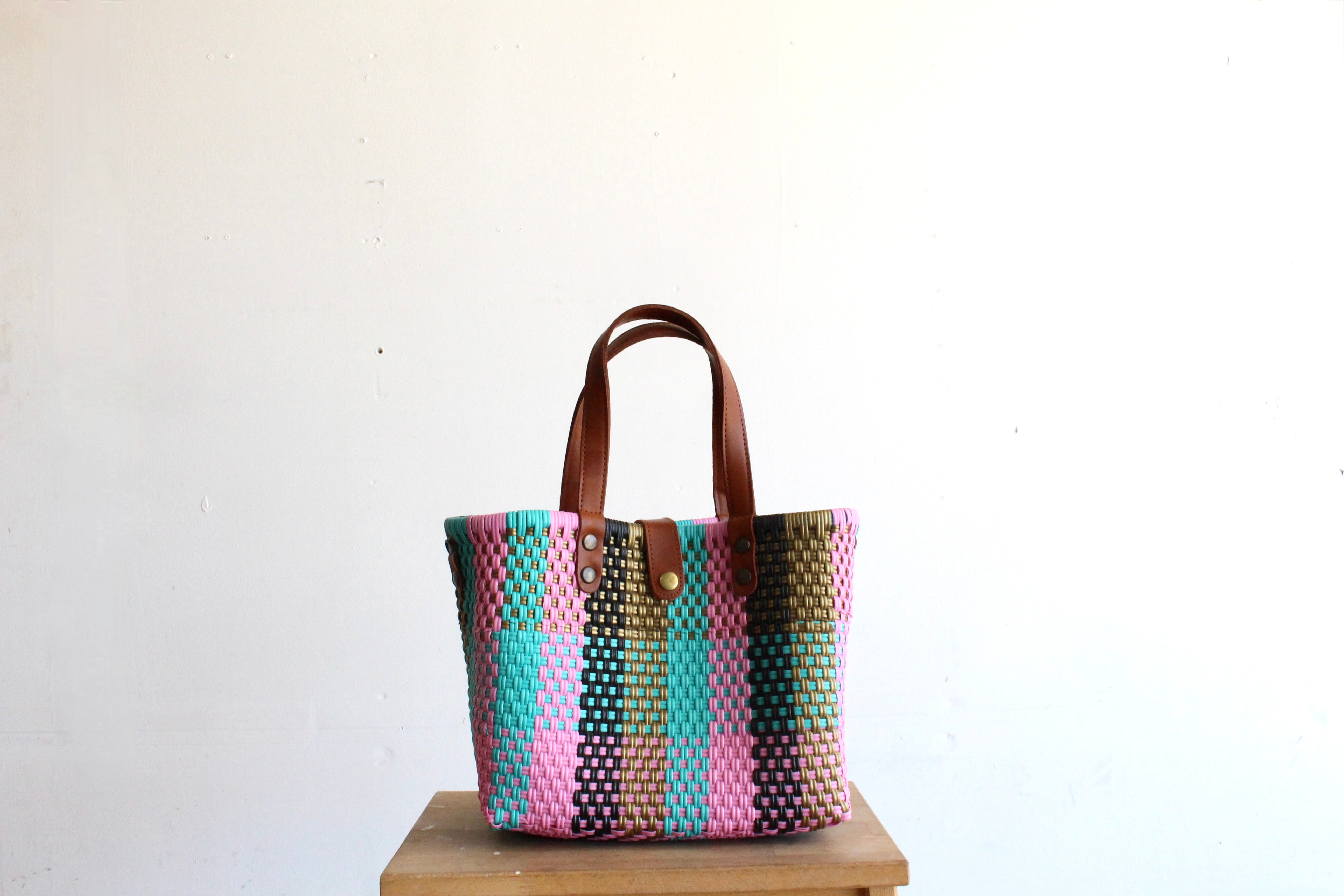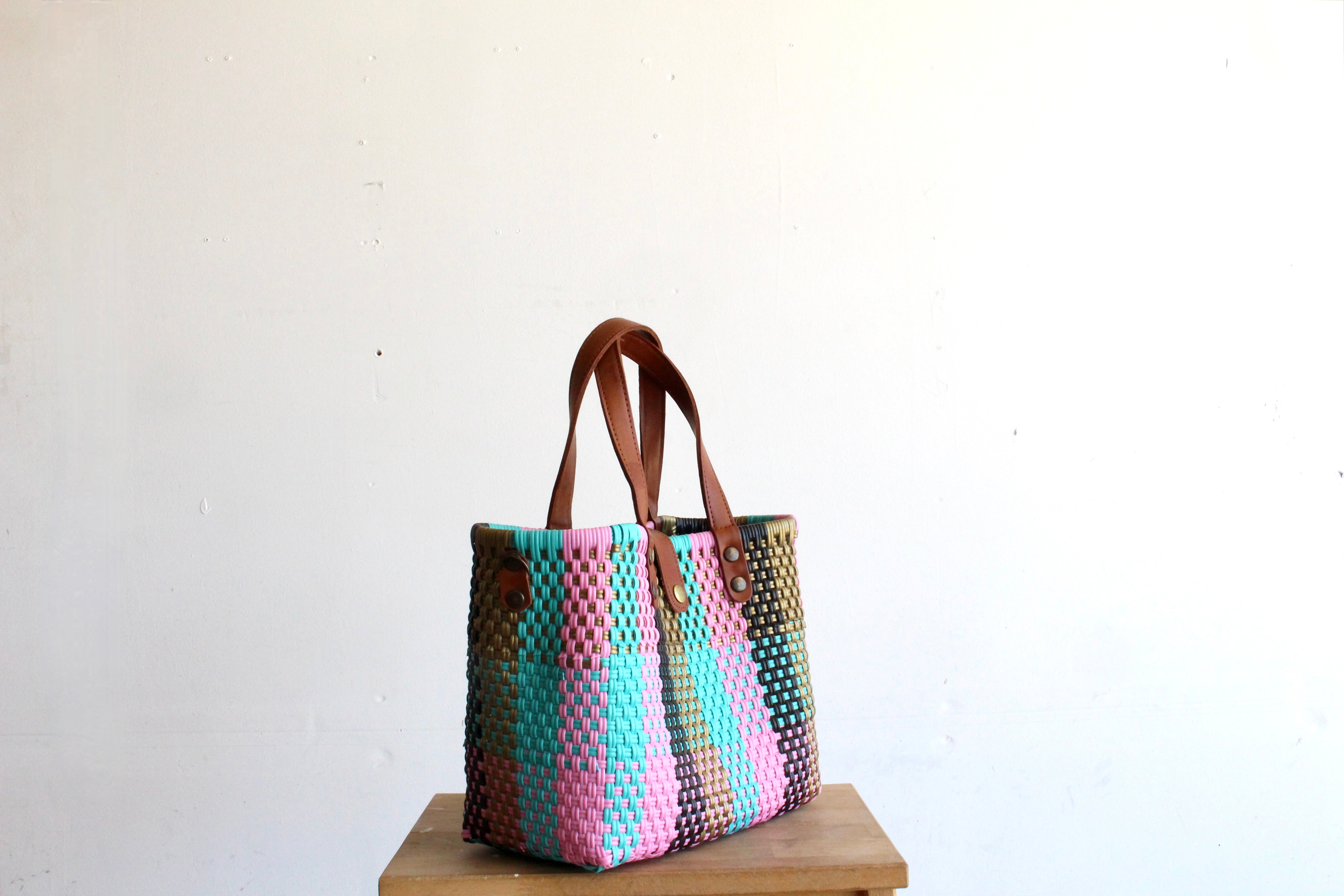 The bag is woven around a square-shaped wooden frame, providing a completely flat base that allows for easy support of all your belongingsAnswer